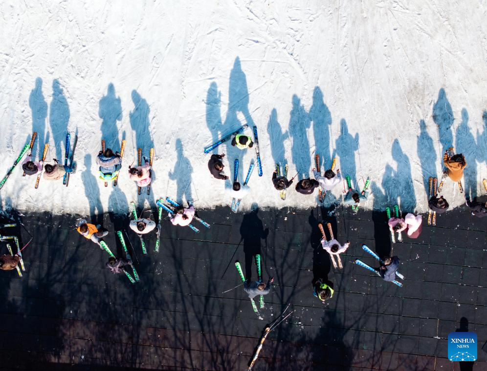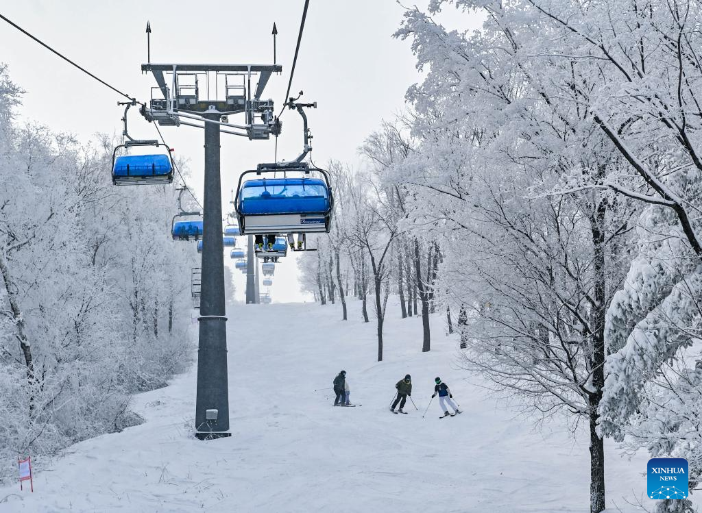 People ski at Lake Songhua Resort in Jilin City, northeast China's Jilin Province, Jan. 29, 2025. During the Spring Festival holiday, many tourist destinations in China have attracted visitors with ice and snow activities. (Xinhua/Yan Linyun)