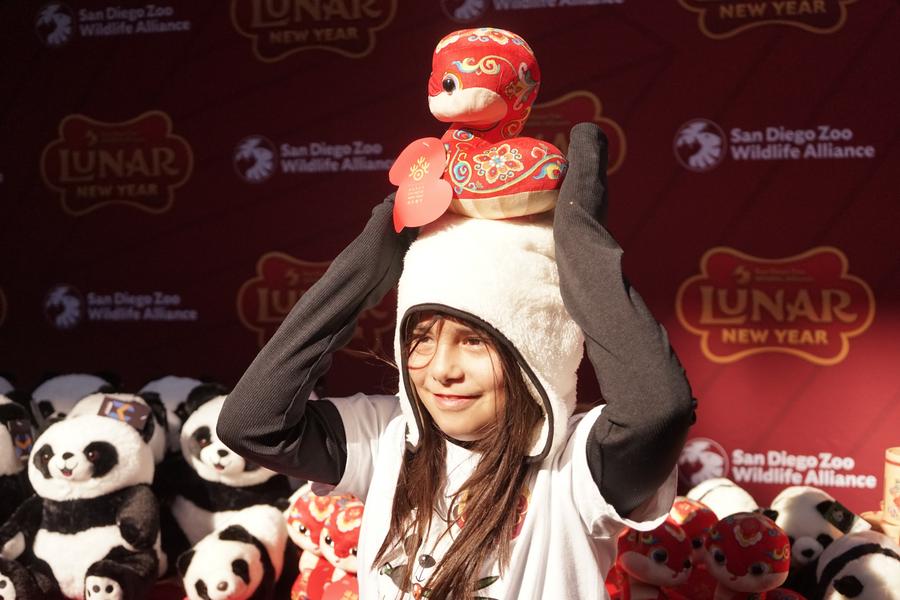 LOS ANGELES, Feb. 3 (Xinhua) -- Red lanterns, wishing trees, red envelop giveaways, Chinese calligraphy, crafts and giant pandas -- the San Diego Zoo hosted vibrant Lunar New Year celebrations over the weekend to welcome the Year of the Snake.