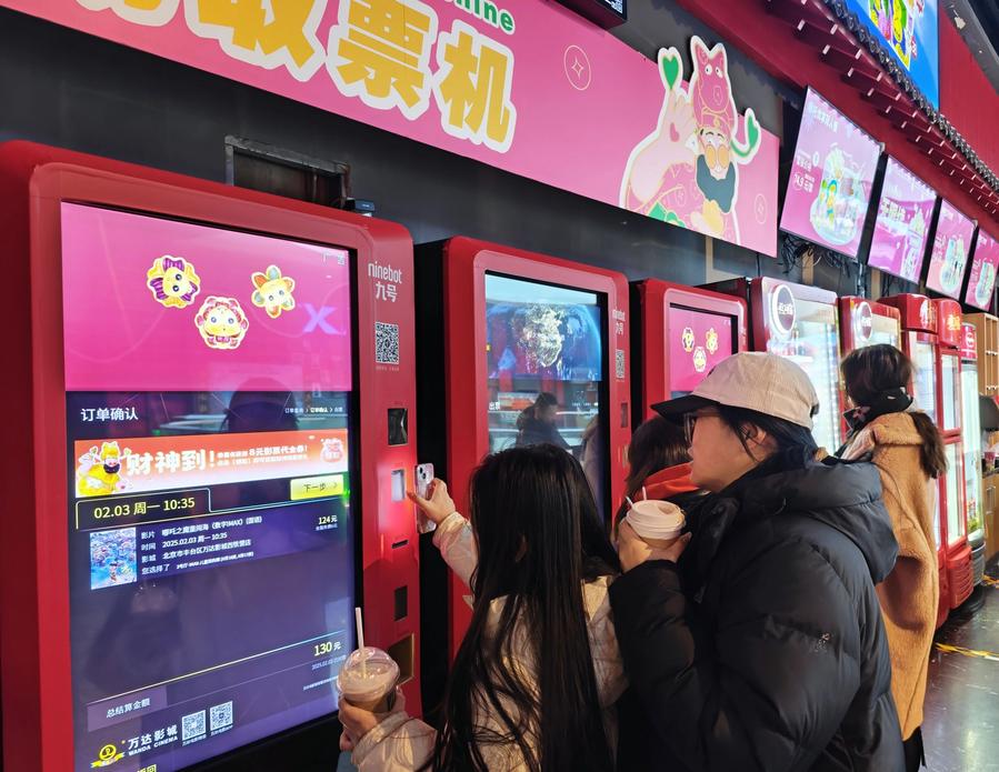 People claim tickets at a cinema in Fengtai District of Beijing, capital of China, Feb. 3, 2025. (Xinhua/Chen Yehua)
