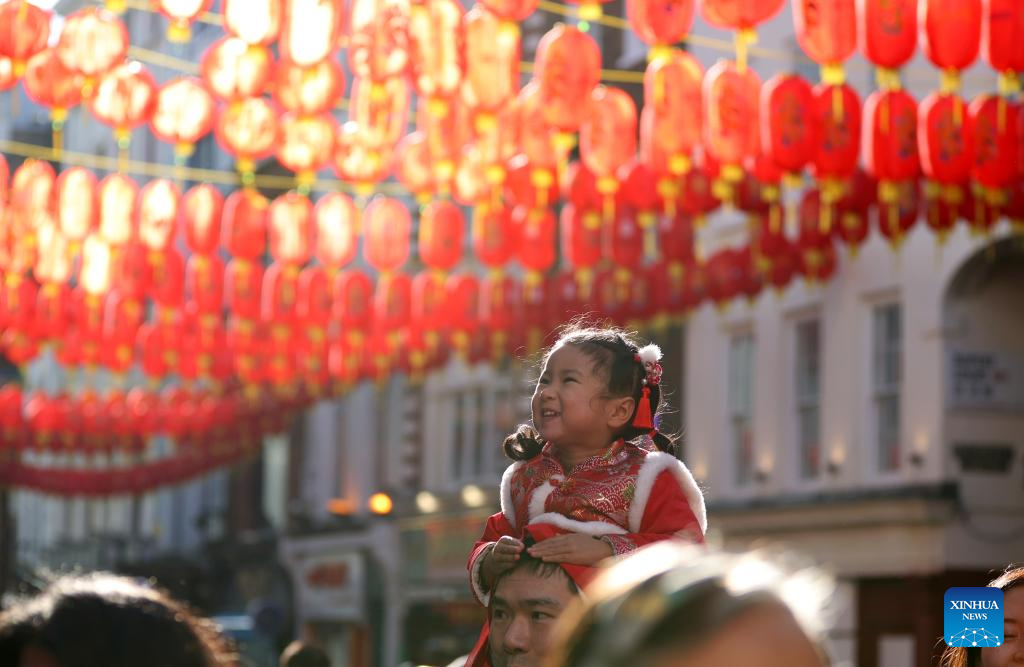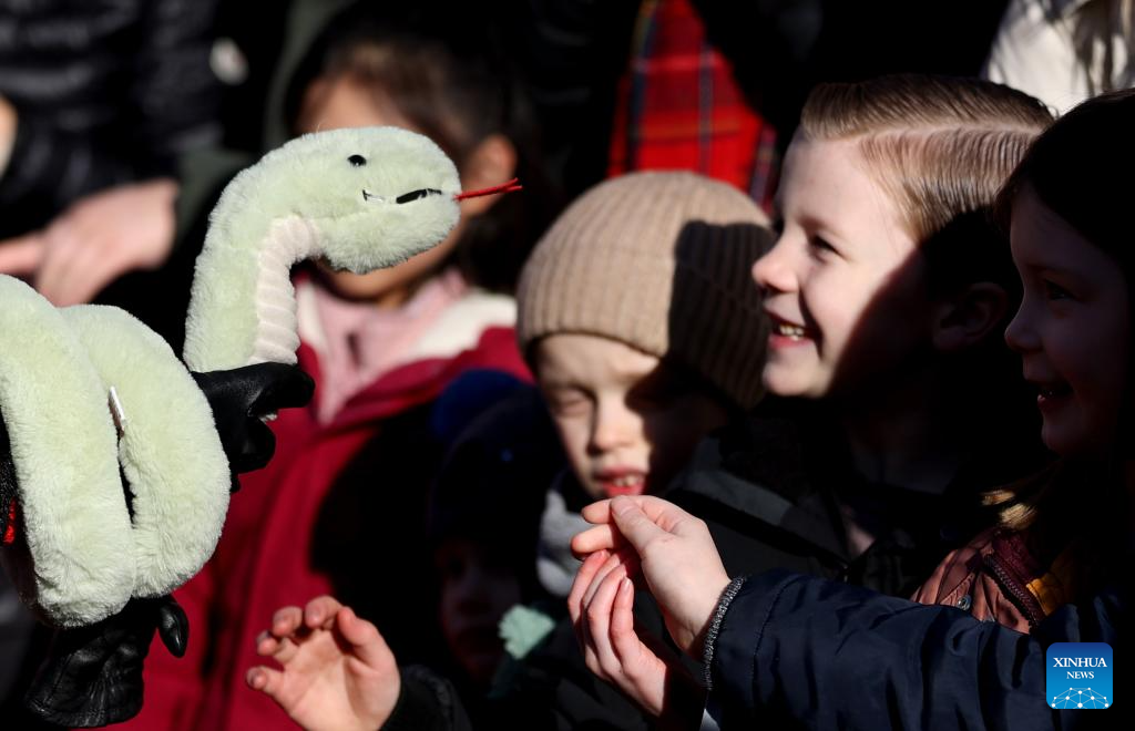 People gather to celebrate the Chinese New Year in London, Britain, on Feb. 2, 2025. Various activities were held in London to celebrate the Chinese Year of the Snake on Sunday. (Xinhua/Li Ying)