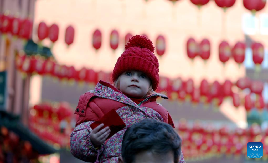 A girl participates in activities to celebrate the Chinese New Year in London, Britain, on Feb. 2, 2025. Various activities were held in London to celebrate the Chinese Year of the Snake on Sunday. (Xinhua/Li Ying)