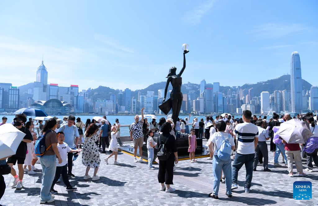 Tourists visit the Avenue of Stars in Hong Kong, south China, Oct. 3, 2024. (Xinhua/Chen Duo)