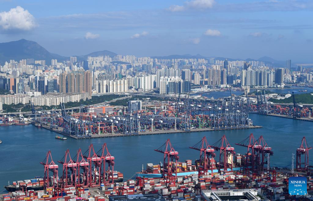 This photo taken on Sept. 17, 2024 shows a container terminal in Hong Kong, south China. (Xinhua/Chen Duo)