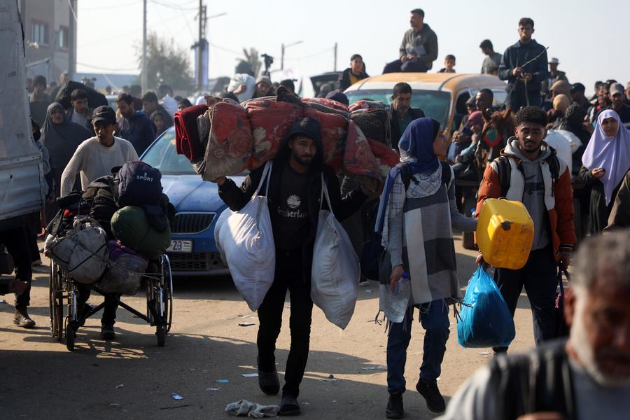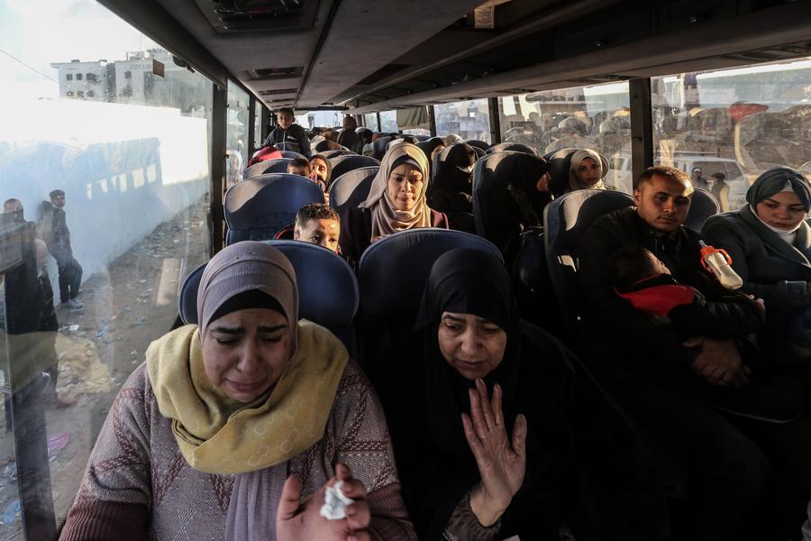 Displaced people are seen on their way home in Gaza City, on Jan. 27, 2025. (Photo by Rizek Abdeljawad/Xinhua)