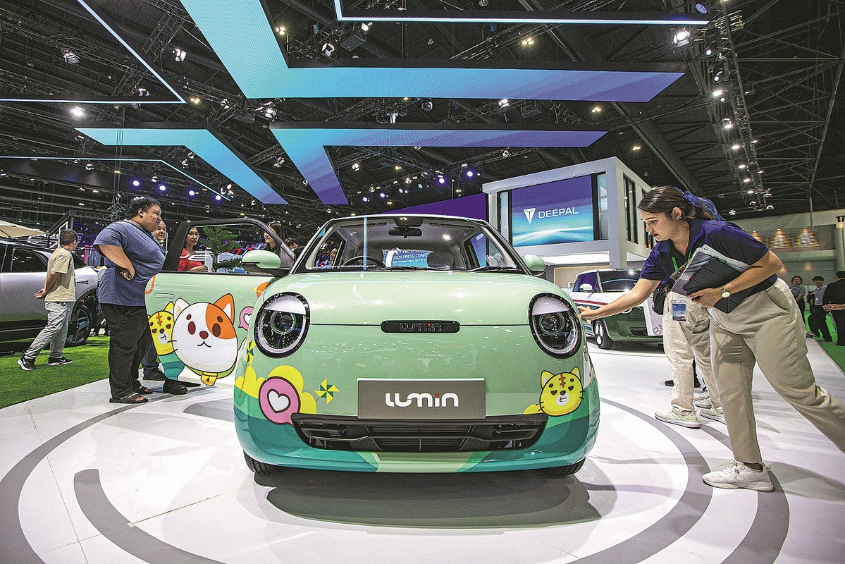 Visitors look at a Lumin of Changan Auto during the 45th Bangkok International Motor Show. (Wang Teng/Xinhua)