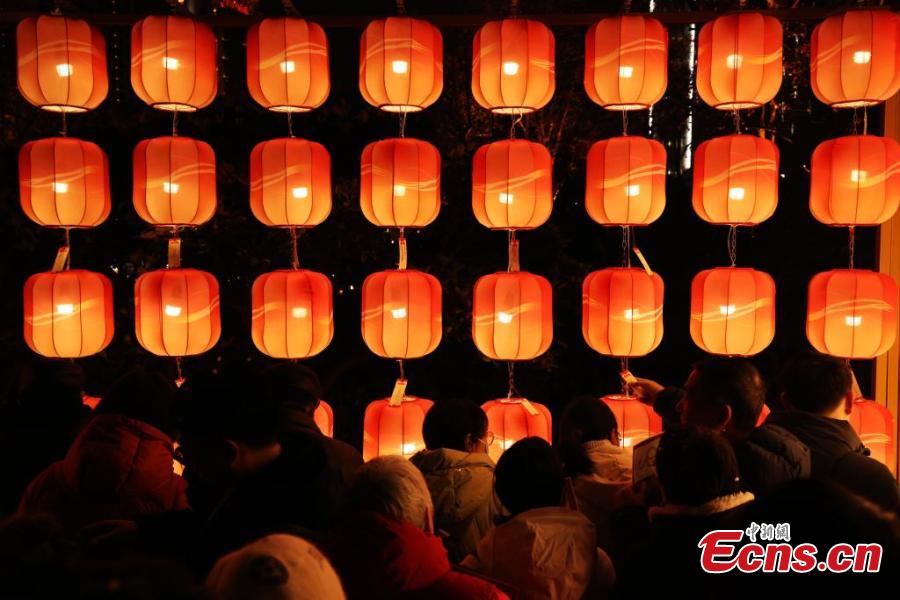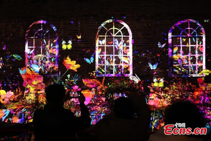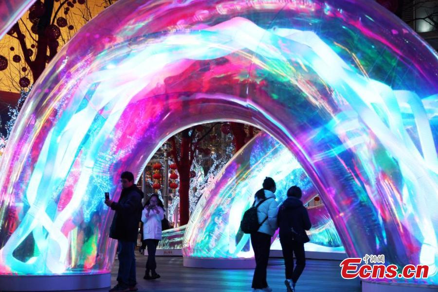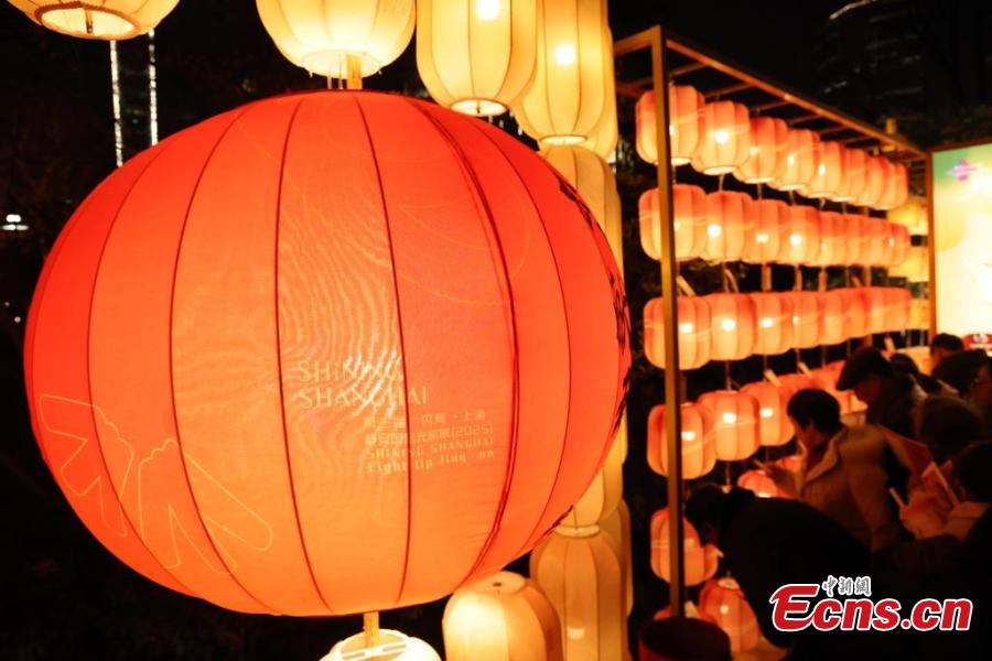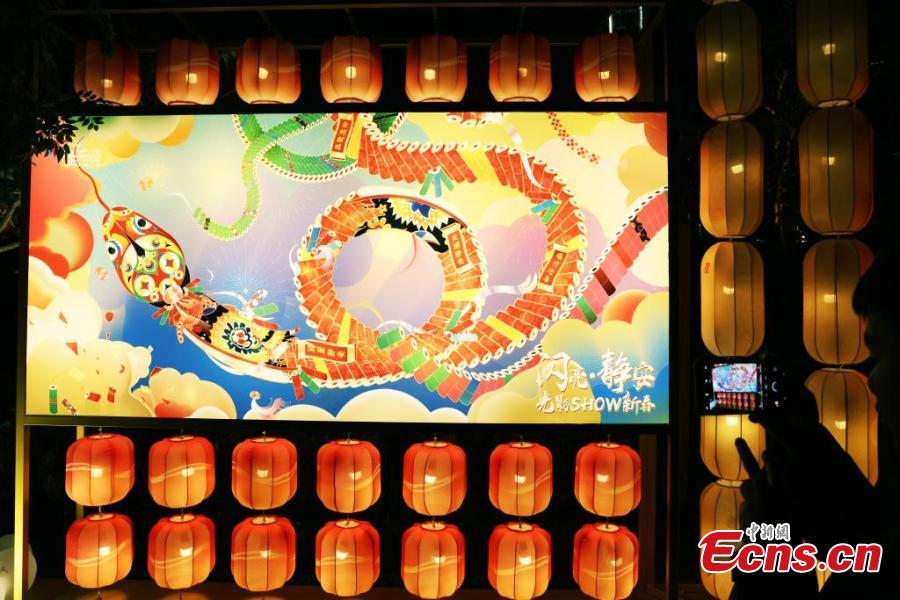 Visitors enjoy a splendid light show celebrating the Spring Festival in Shanghai, Feb. 4, 2025. (China News Service/Tang Yanjun)