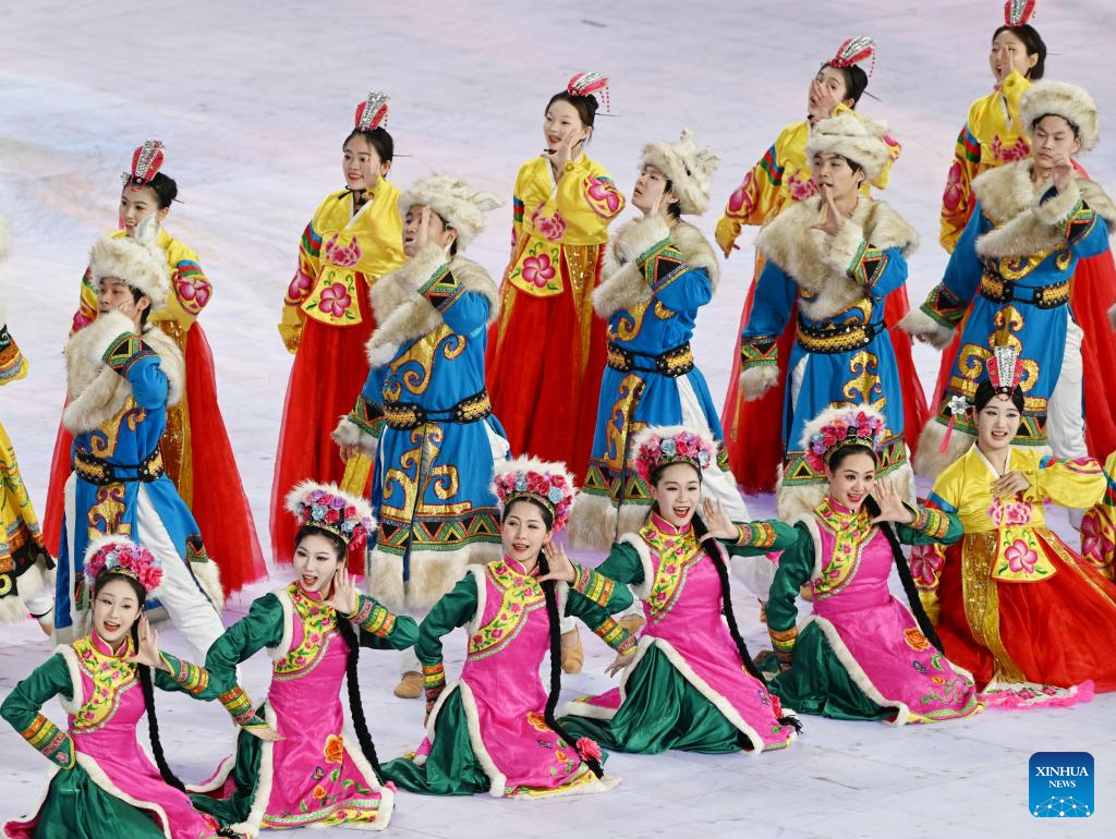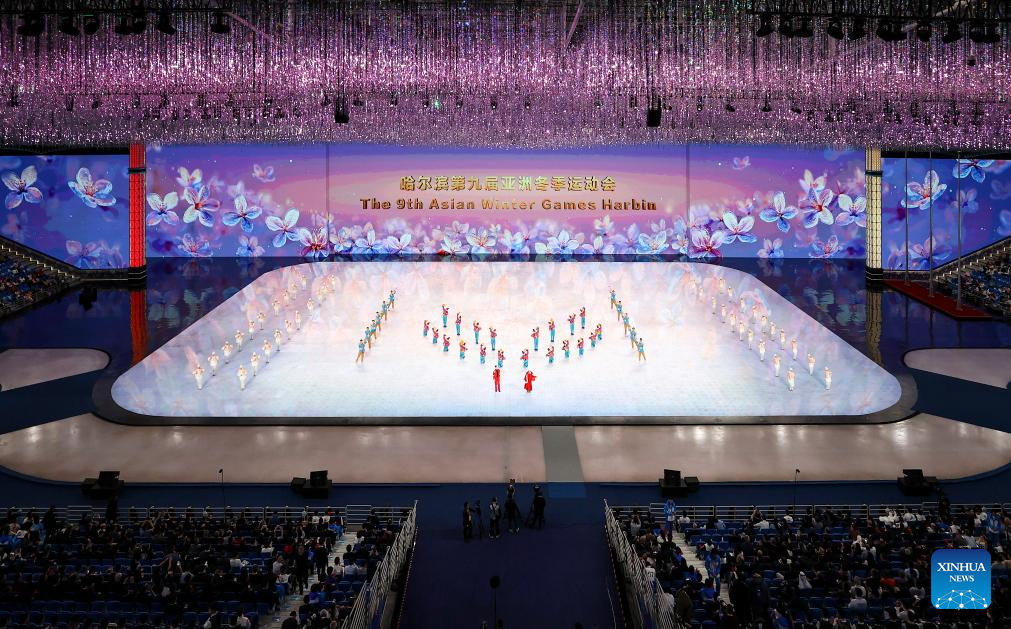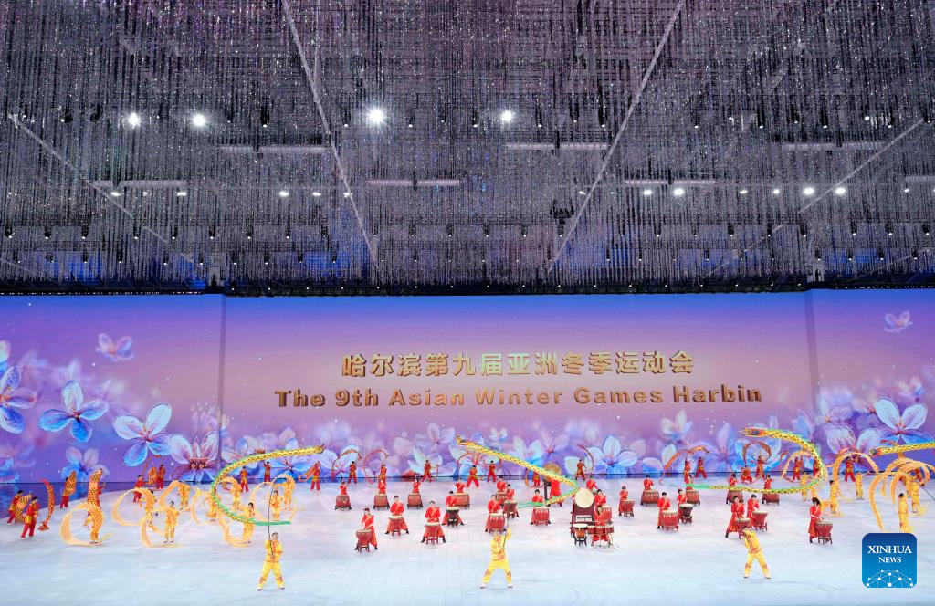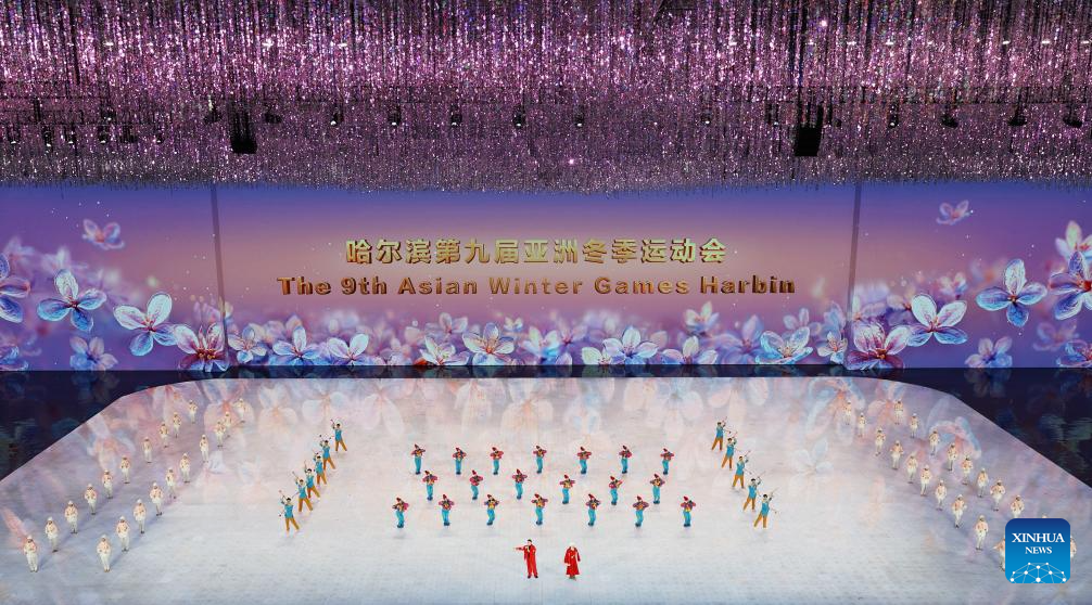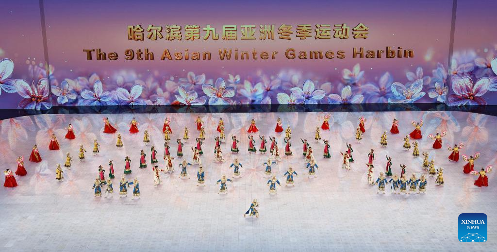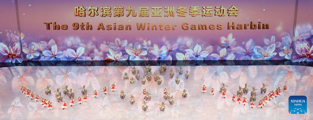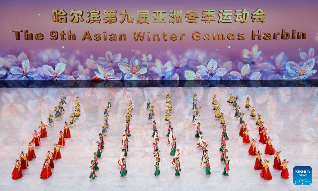 Artists perform prior to the opening ceremony of the 9th Asian Winter Games in Harbin, northeast China's Heilongjiang Province, Feb. 7, 2025. (Xinhua/Yang Lei)