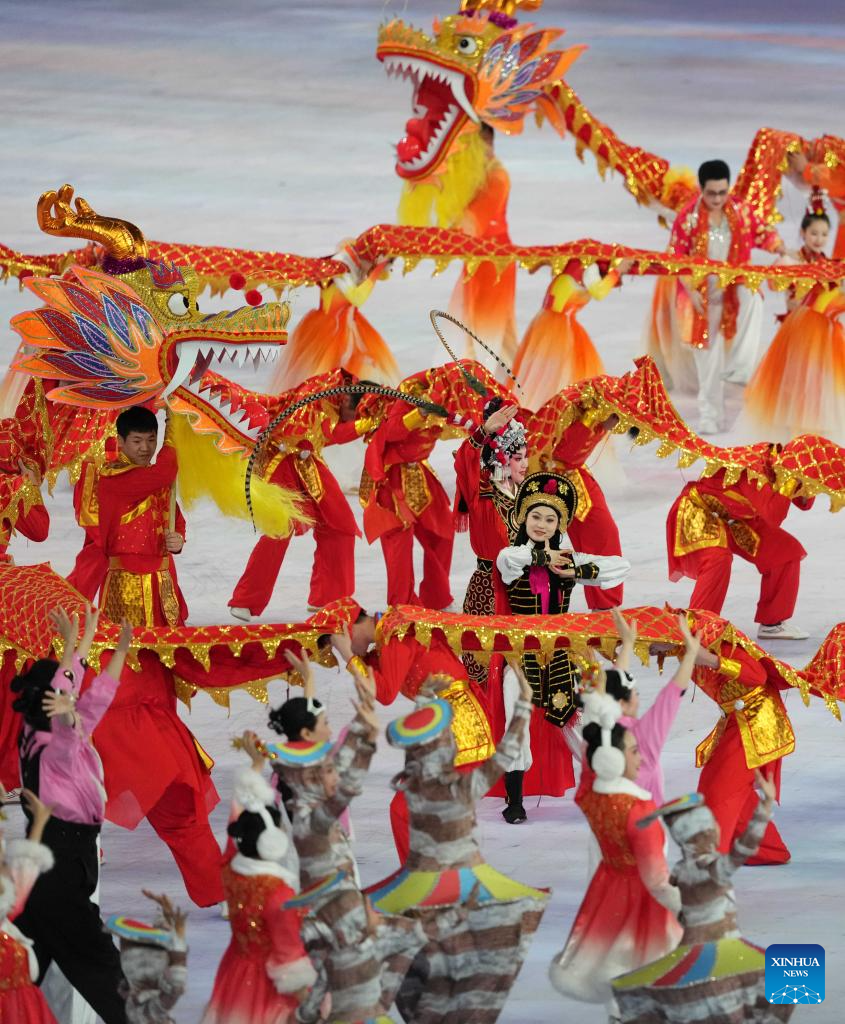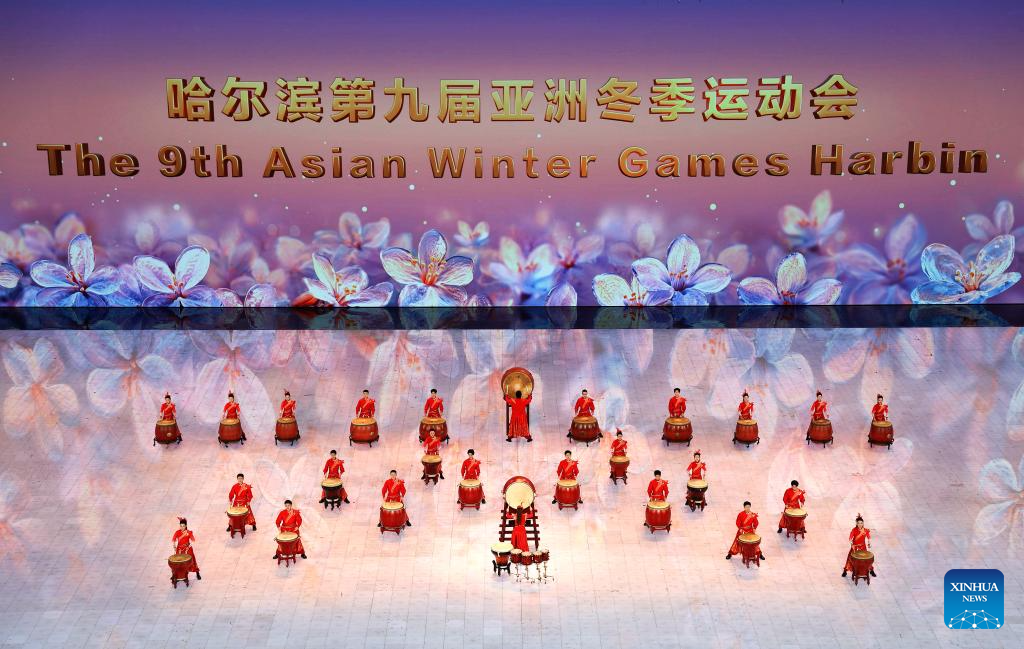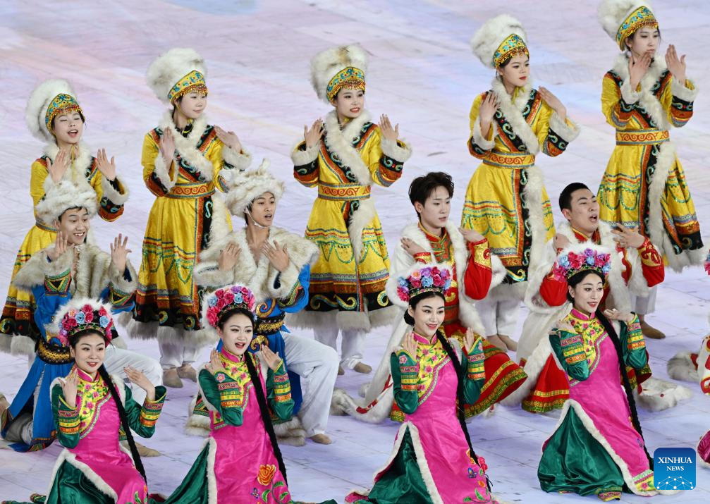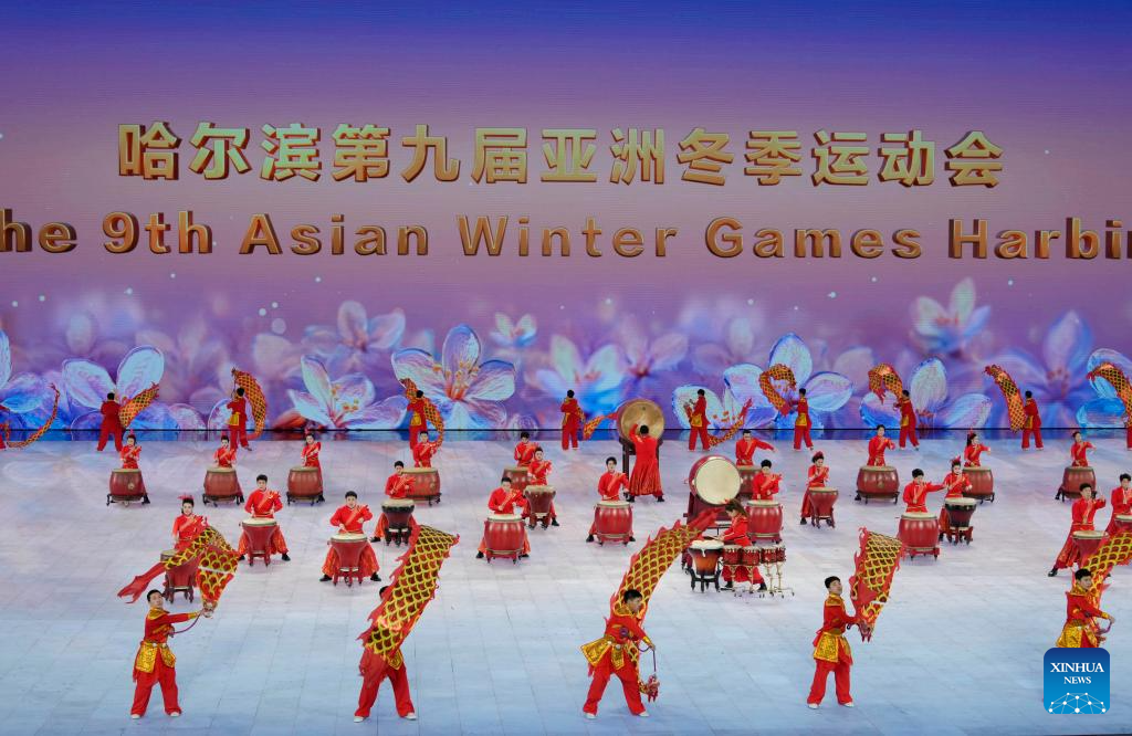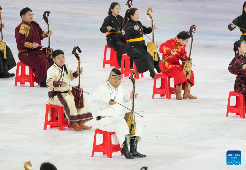 Artists perform prior to the opening ceremony of the 9th Asian Winter Games in Harbin, northeast China's Heilongjiang Province, Feb. 7, 2025. (Xinhua/Yang Lei)