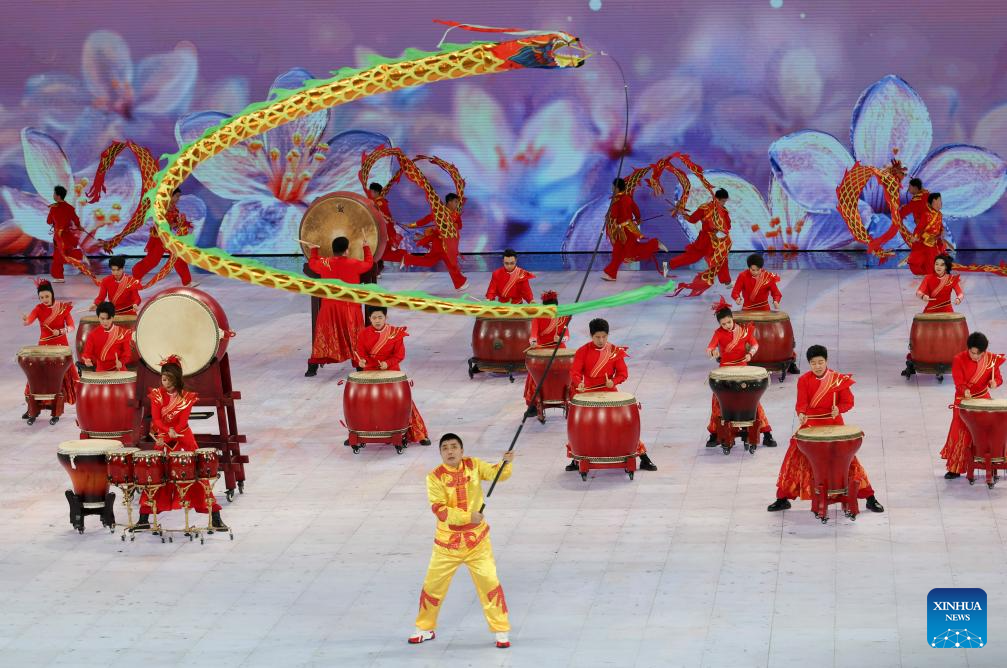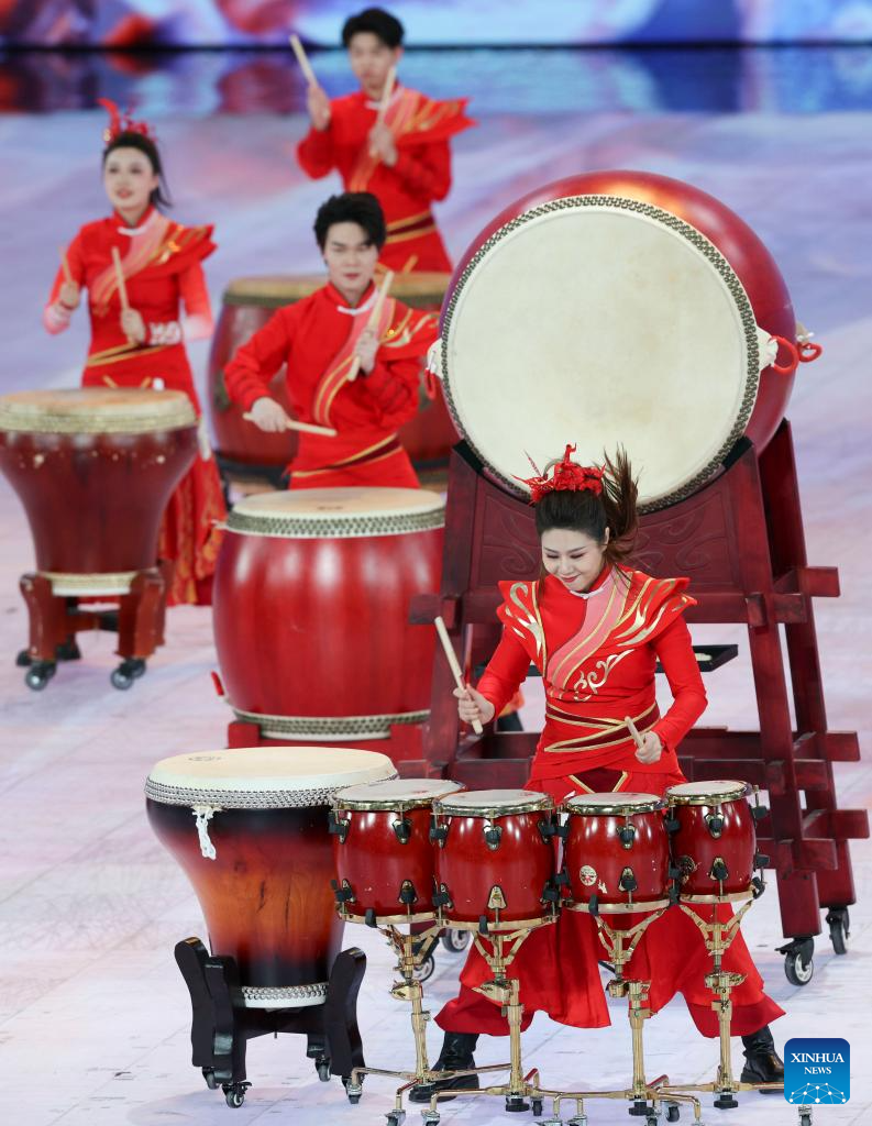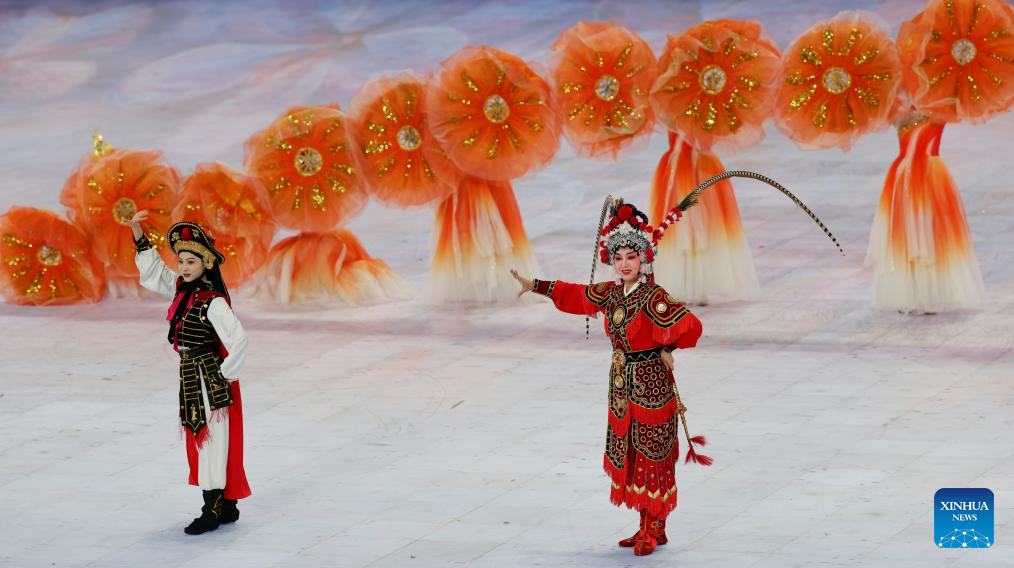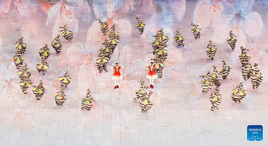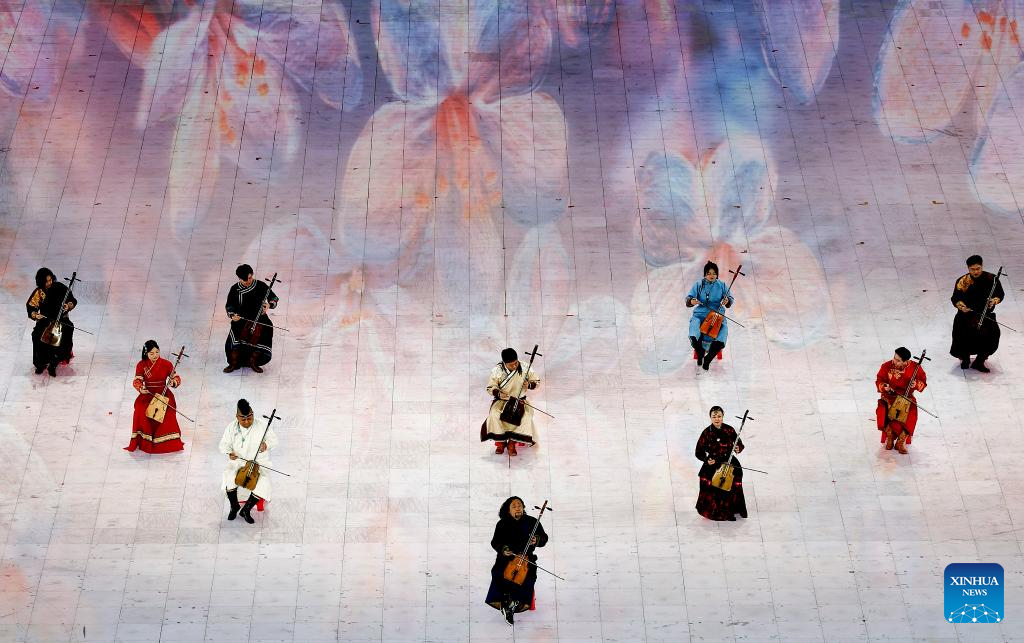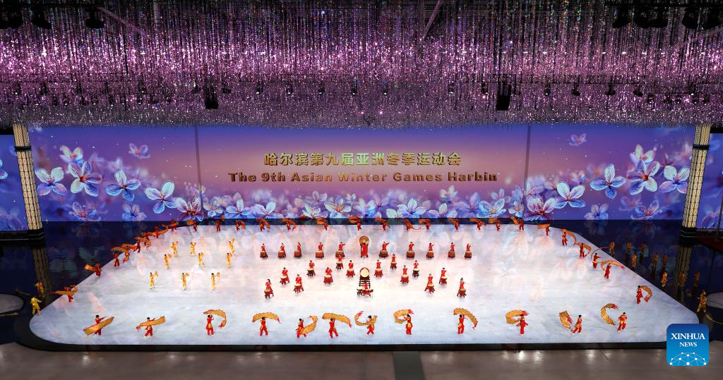 Artists perform prior to the opening ceremony of the 9th Asian Winter Games in Harbin, northeast China's Heilongjiang Province, Feb. 7, 2025. (Xinhua/Li Ziheng)
