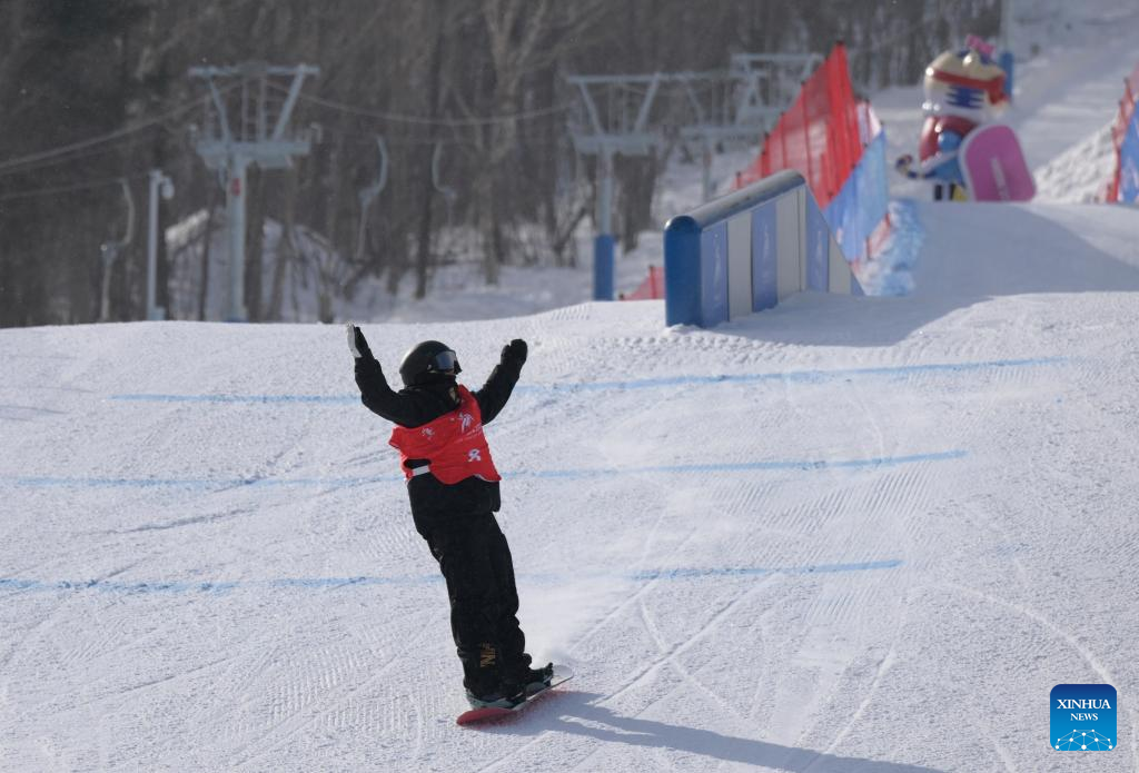 HARBIN, Feb. 8 (Xinhua) -- China's Zhang Xiaonan claimed gold in the women's snowboard slopestyle event at the Harbin Asian Winter Games, delivering a dominant performance at Yabuli on Saturday.
