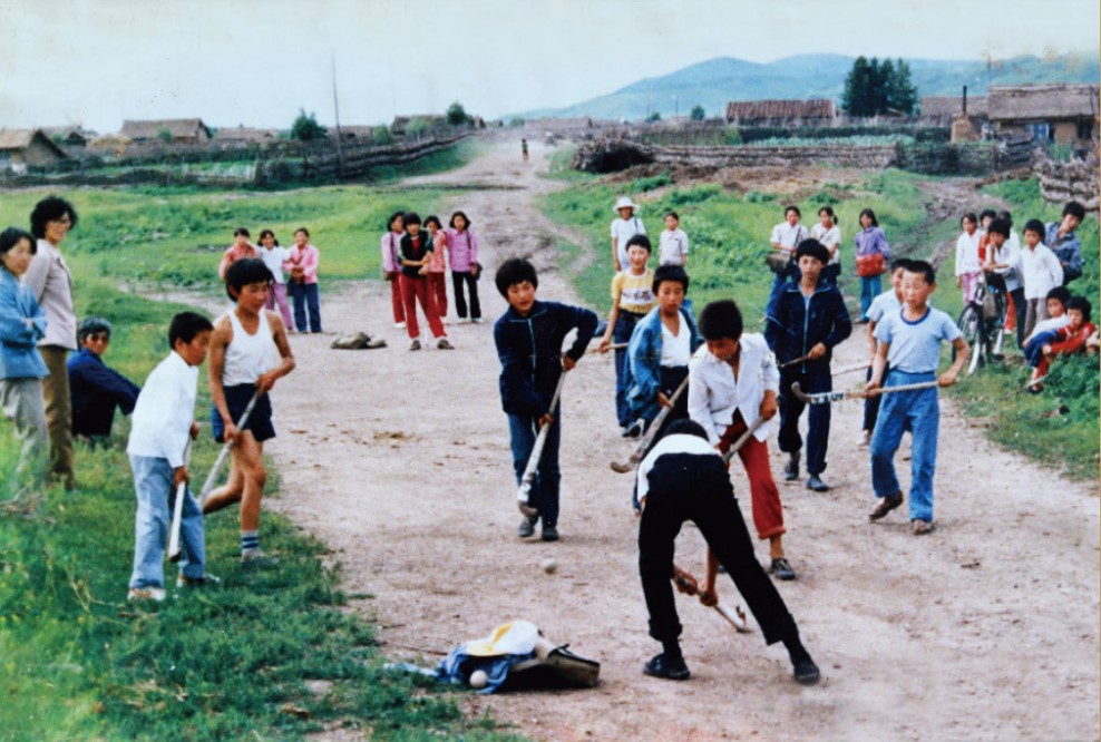 Photo shows teenagers playing field hockey on open ground in Morin Dawa Daur autonomous banner, north China's Inner Mongolia autonomous region, in the 1980s. (Photo provided by the publicity department of CPC Morin Dawa Daur autonomous banner committee)