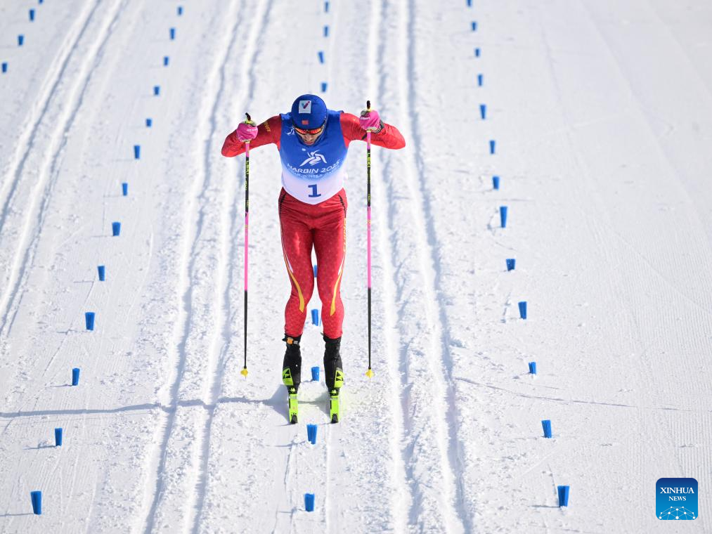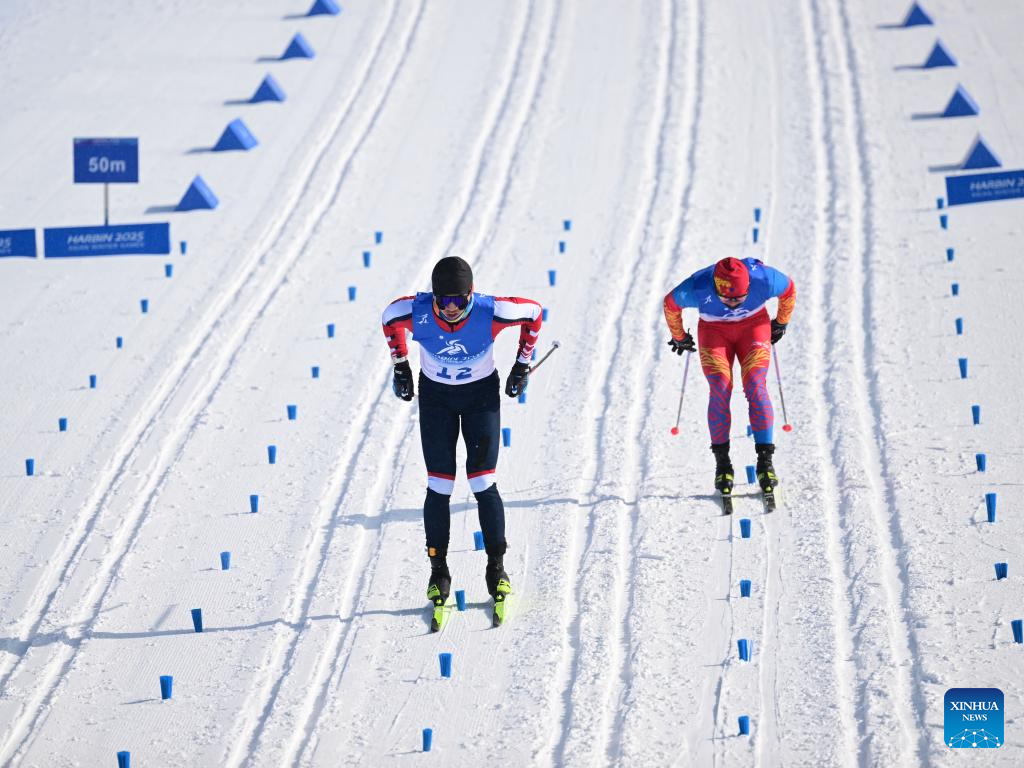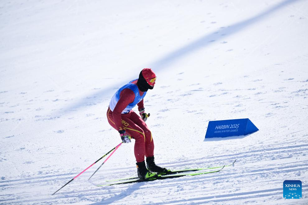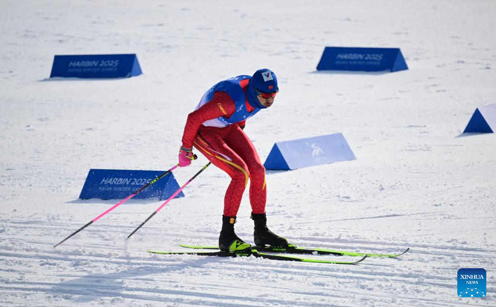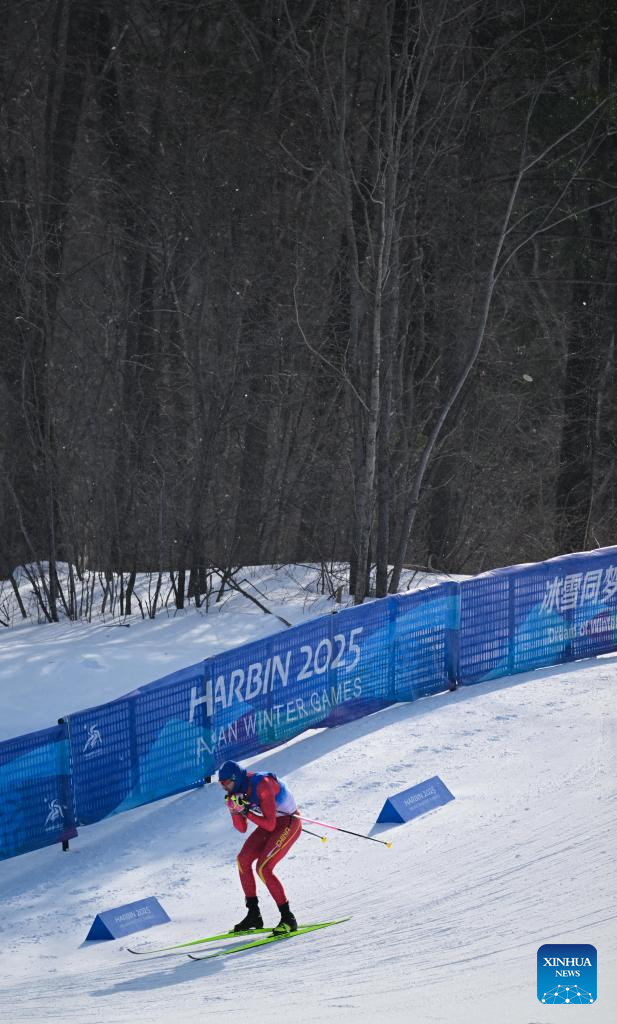 Li Minglin of China competes during the men's sprint classic qualification match of the cross-country skiing event at the 9th Asian Winter Games in Yabuli, northeast China's Heilongjiang Province, Feb. 8, 2025. (Xinhua/Zhang Long)