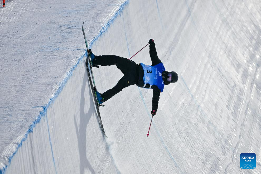 Moon Heesung of South Korea competes during the Men's Freestyle Skiing Halfpipe finals the 9th Asian Winter Games in Yabuli, northeast China's Heilongjiang Province, Feb. 8, 2025. (Xinhua/Yang Chenguang)