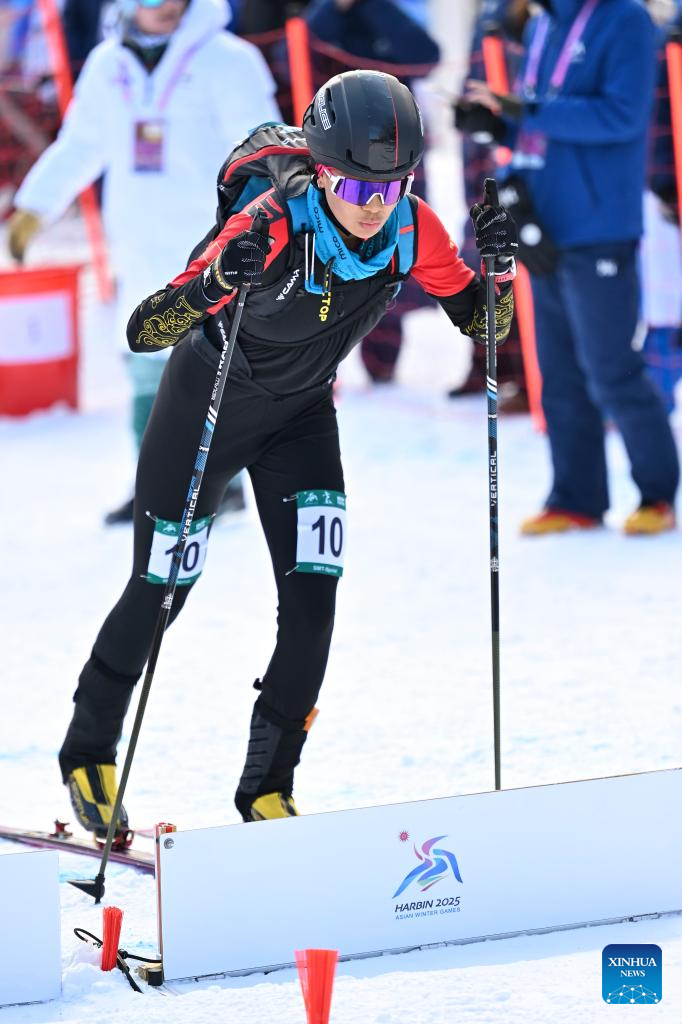 Suolang Quzhen of China competes during the Ski Mountaineering women's sprint qualification match at the 9th Asian Winter Games in Yabuli, northeast China's Heilongjiang Province, Feb. 9, 2025. (Xinhua/Yang Guanyu)