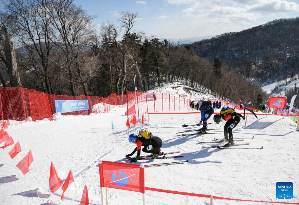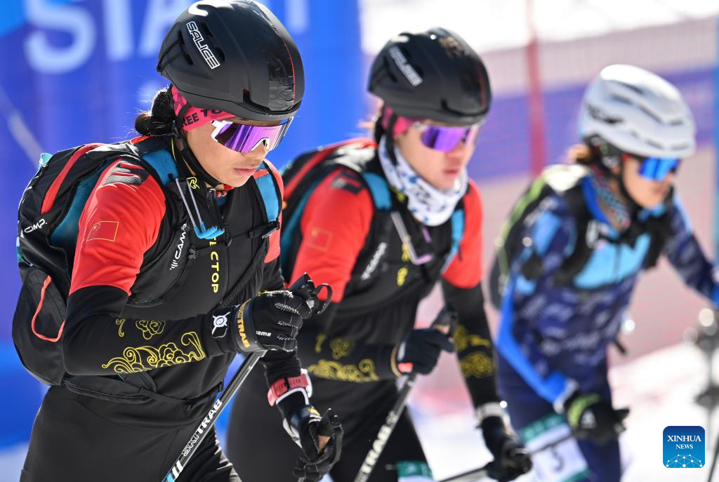 Suolang Quzhen of China competes during the Ski Mountaineering women's sprint semifinal match at the 9th Asian Winter Games in Yabuli, northeast China's Heilongjiang Province, Feb. 9, 2025. (Xinhua/Xie Jianfei)