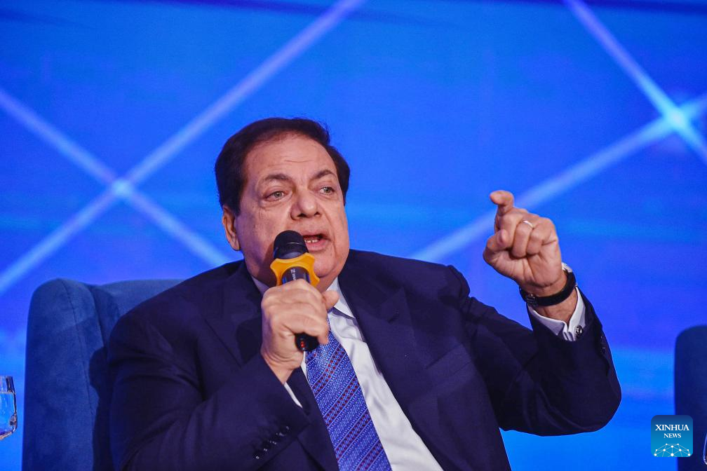 Deputy Speaker of the Egyptian Parliament Mohamed Abou El-Enein speaks at the 11th Akhbar El Youm economic conference in Cairo, Egypt, Feb. 8, 2025. (Xinhua/Ahmed Gomaa)