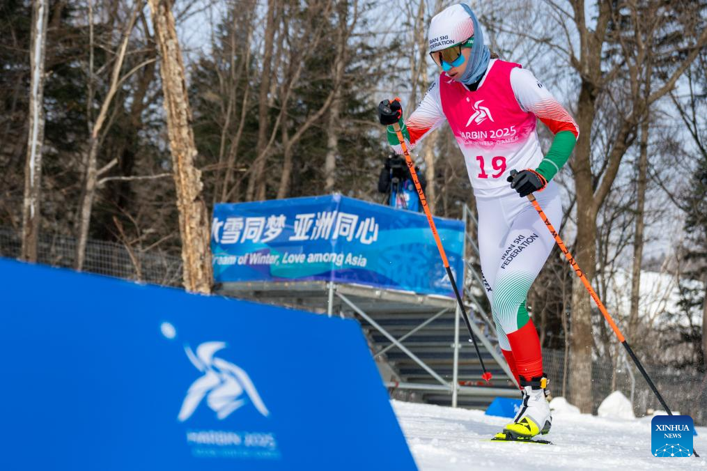 Farnoosh Shemshaki of Iran competes during the women's sprint classic qualification match of the cross-country skiing event at the 9th Asian Winter Games in Yabuli, northeast China's Heilongjiang Province, Feb. 8, 2025. (Xinhua/Wu Zhizun)