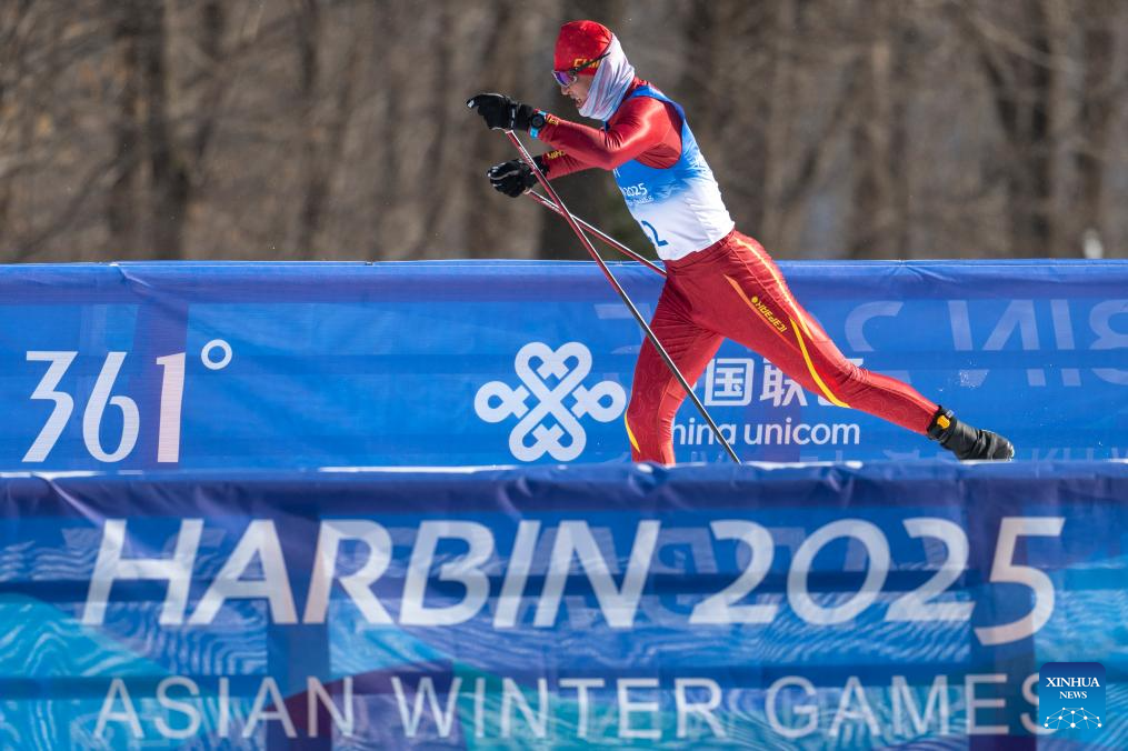 Cirenzhandui of China competes during the men's sprint classic qualification match of the cross-country skiing event at the 9th Asian Winter Games in Yabuli, northeast China's Heilongjiang Province, Feb. 8, 2025. (Xinhua/Lian Zhen)