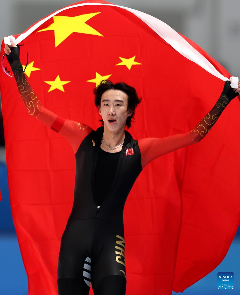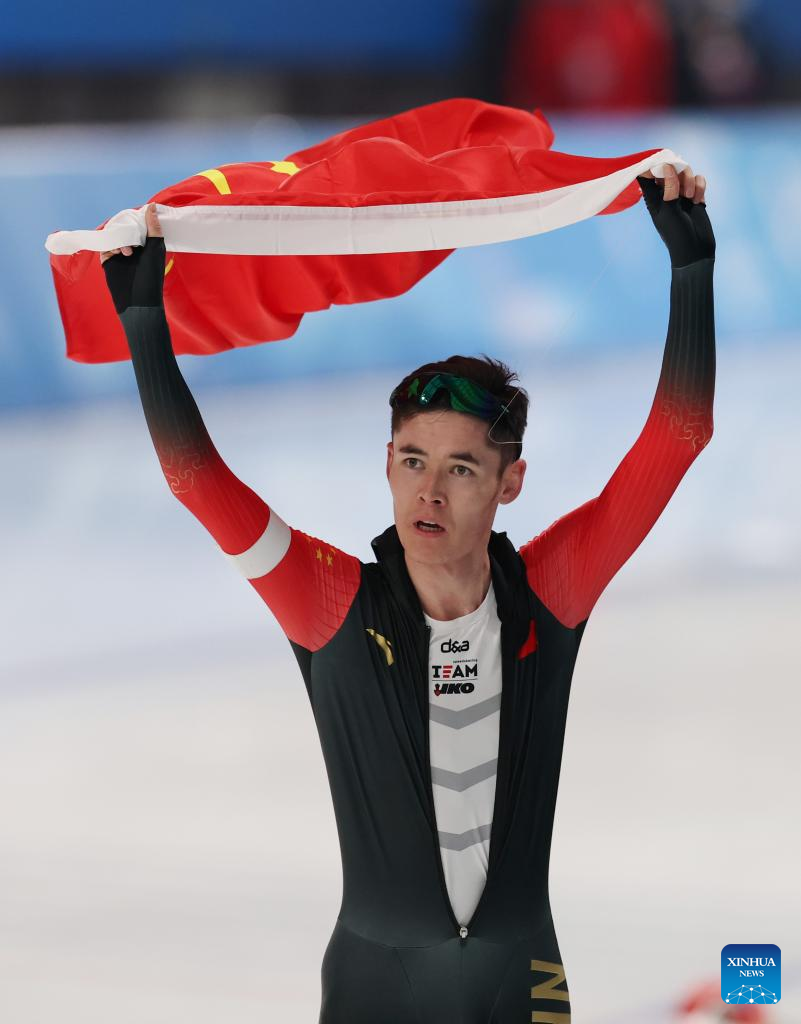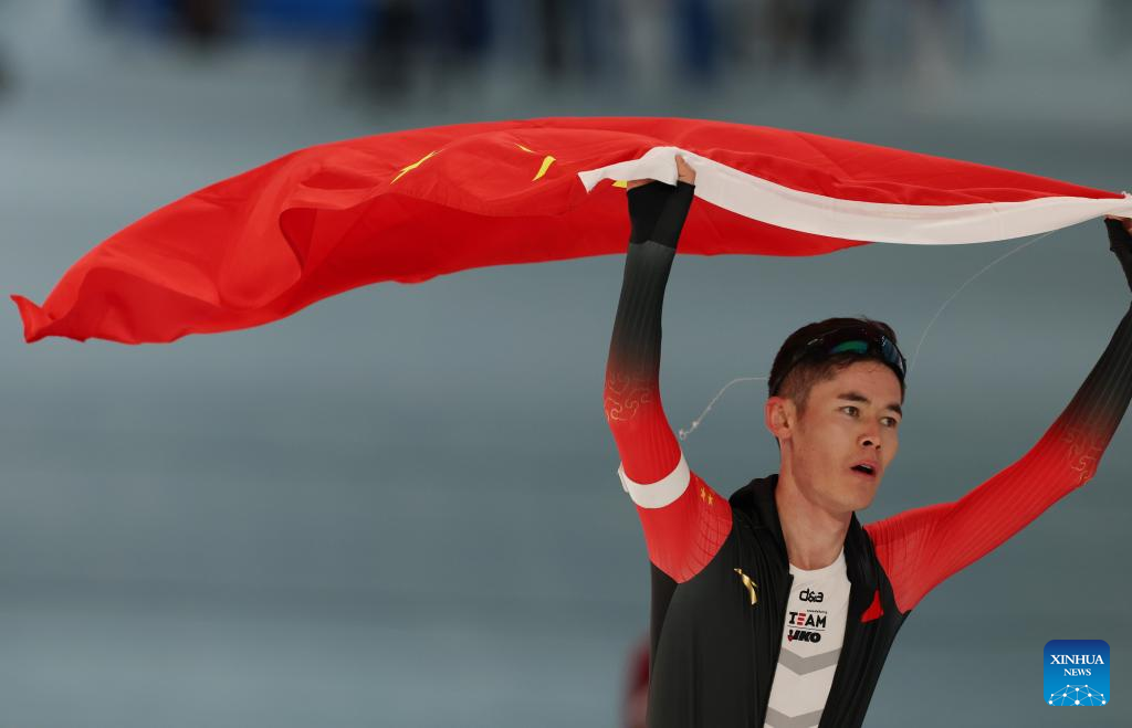 The men's 5,000m victory added to the three gold medals won by Chinese skaters in the Speed Skating Oval of the Heilongjiang Ice Training Center on Saturday, further consolidating China's leading position on the medal tally of the sport after two competition days.