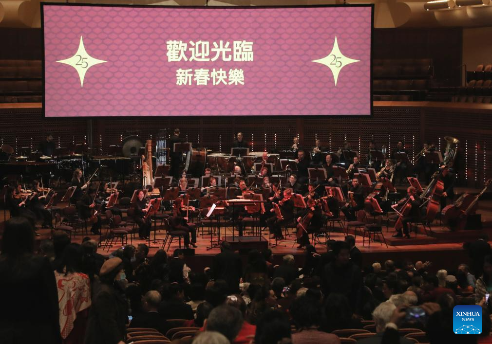 A concert in celebration of the Chinese New Year is staged by the San Francisco Symphony at Davies Symphony Hall in San Francisco, California, the United States, Feb. 8, 2025. (Photo by Liu Yilin/Xinhua)