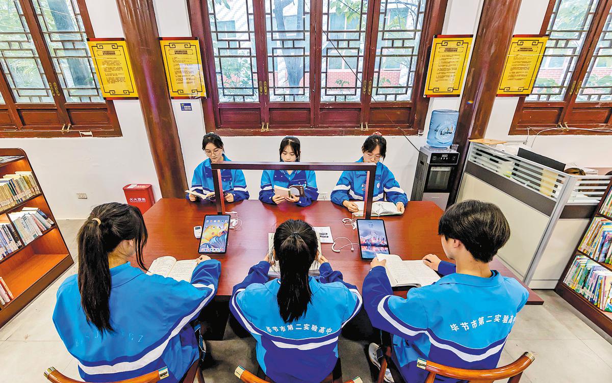 Students read books at Wenfeng Academy in Qianxi, Guizhou province, in April. (Fan Hui/Xinhua)
