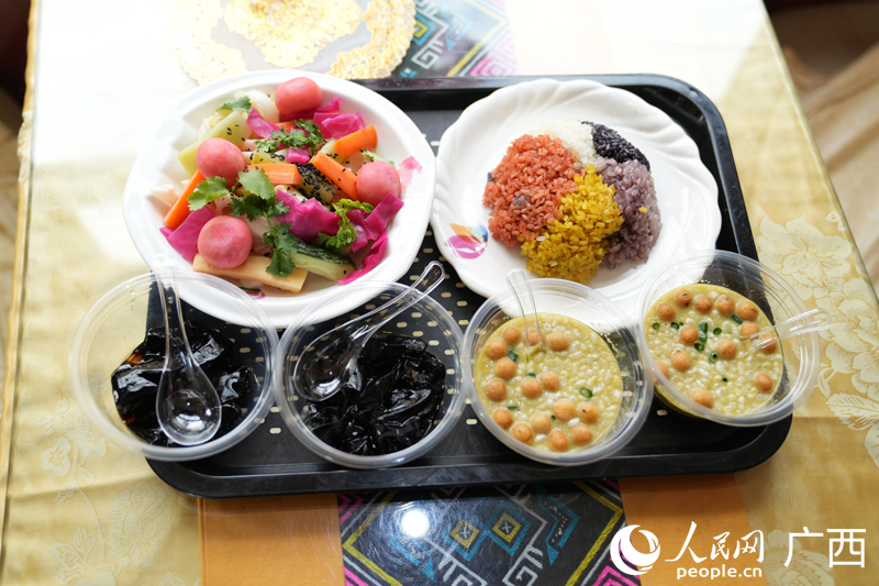 During this year's Chunyun, or Spring Festival travel season, China Railway Nanning Group Co., Ltd. added dishes to the meal choices on all trains. The Z6 train, in particular, now serves intangible cultural heritage delicacies like Luosifen, or river snail rice noodles, Guilin rice noodles, Laoyou rice noodles, five-colored sticky rice, oil tea, and Guilinggao, a time-honored jelly-like Chinese dessert.