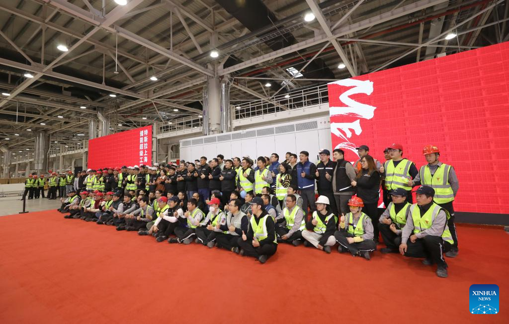 SHANGHAI, Feb. 11 (Xinhua) -- U.S. carmaker Tesla's new Megafactory in Shanghai, dedicated to manufacturing its energy-storage batteries, known as Megapacks, launched production on Tuesday, marking a significant expansion of the company's presence in China.