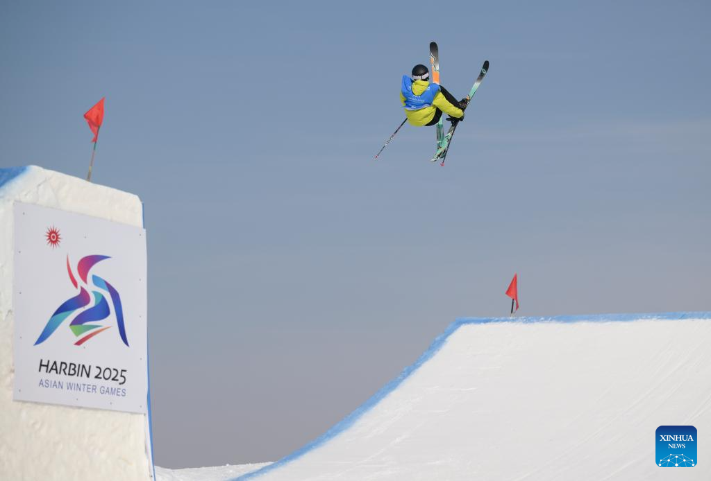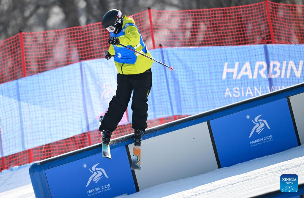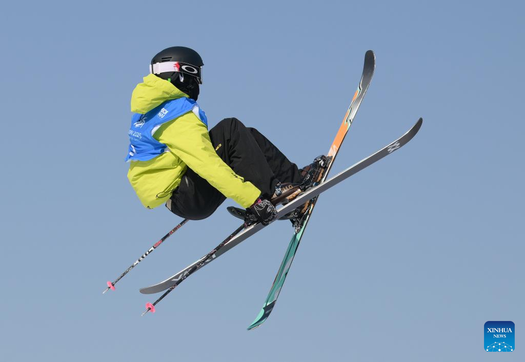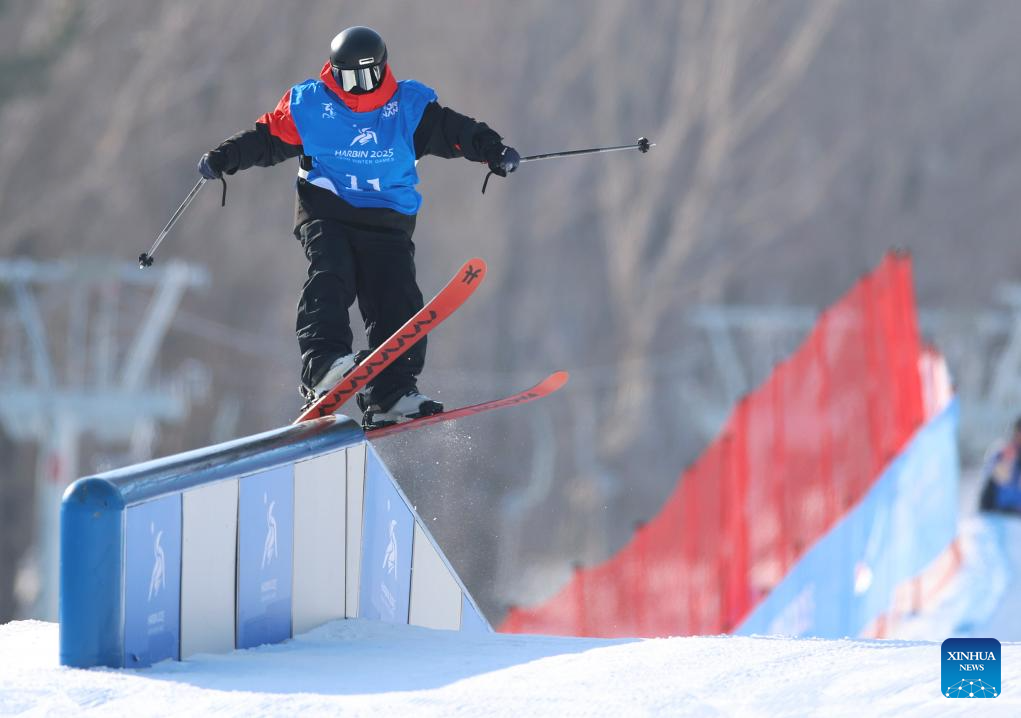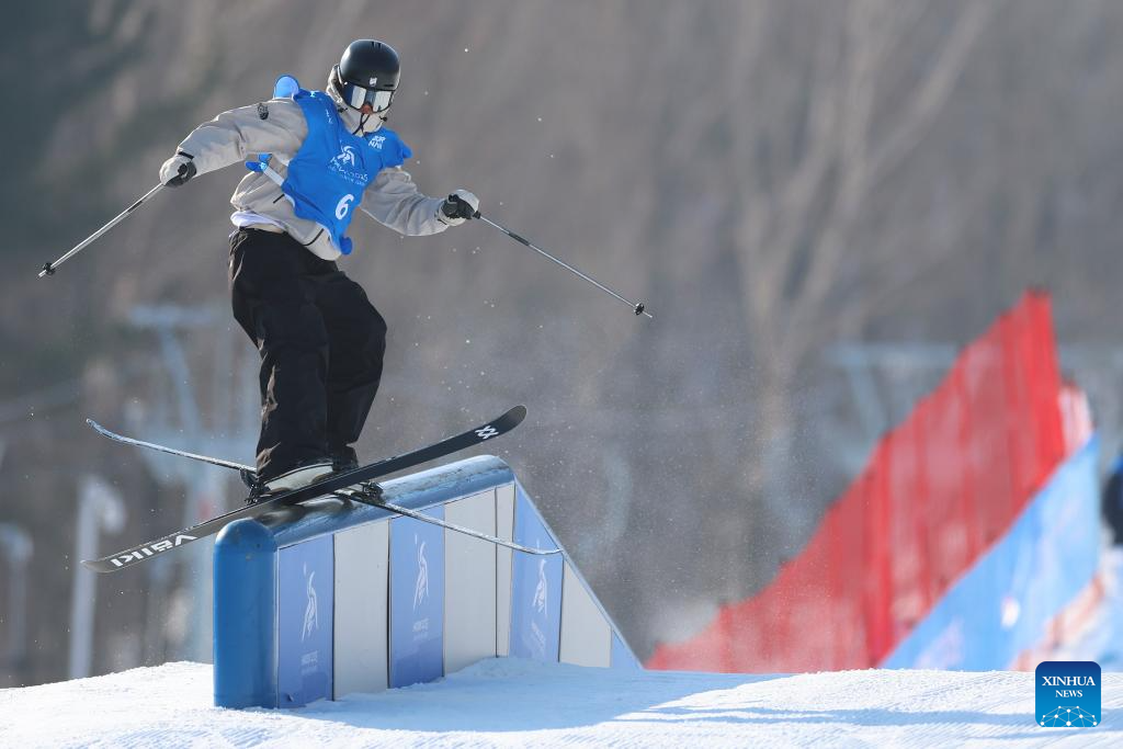 Lin Hao of China competes during the Freestyle Skiing men's freeski slopestyle final at the 9th Asian Winter Games in Yabuli, northeast China's Heilongjiang Province, Feb. 11, 2025. (Xinhua/Mu Yu)