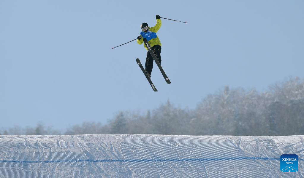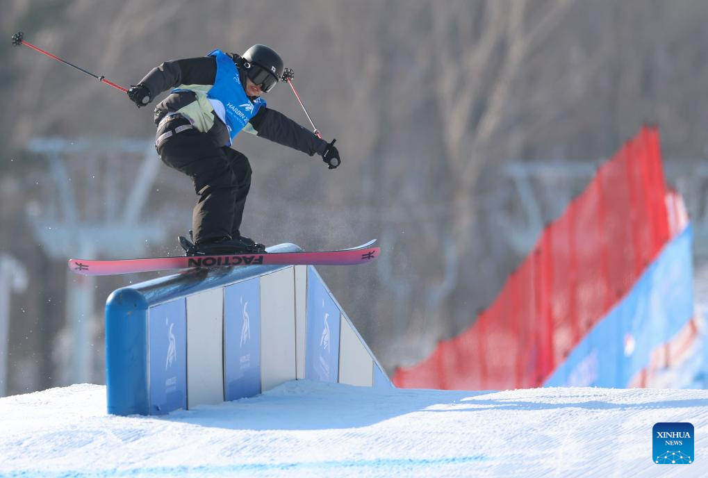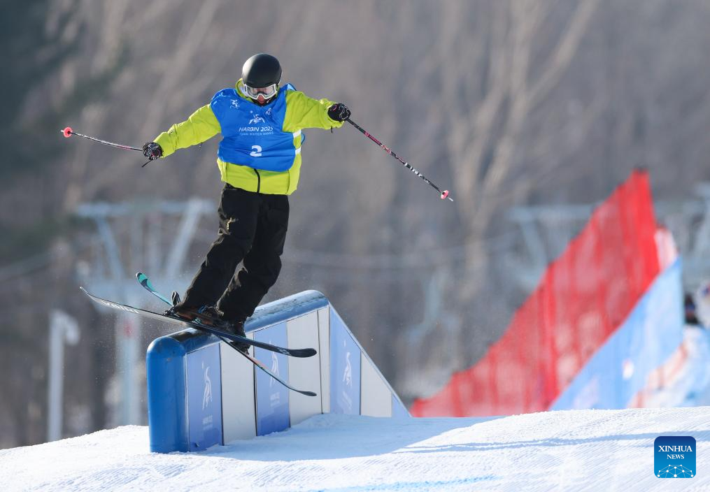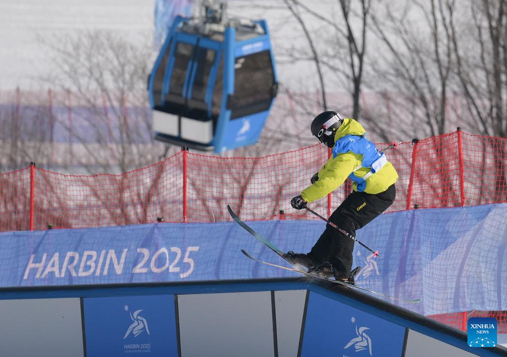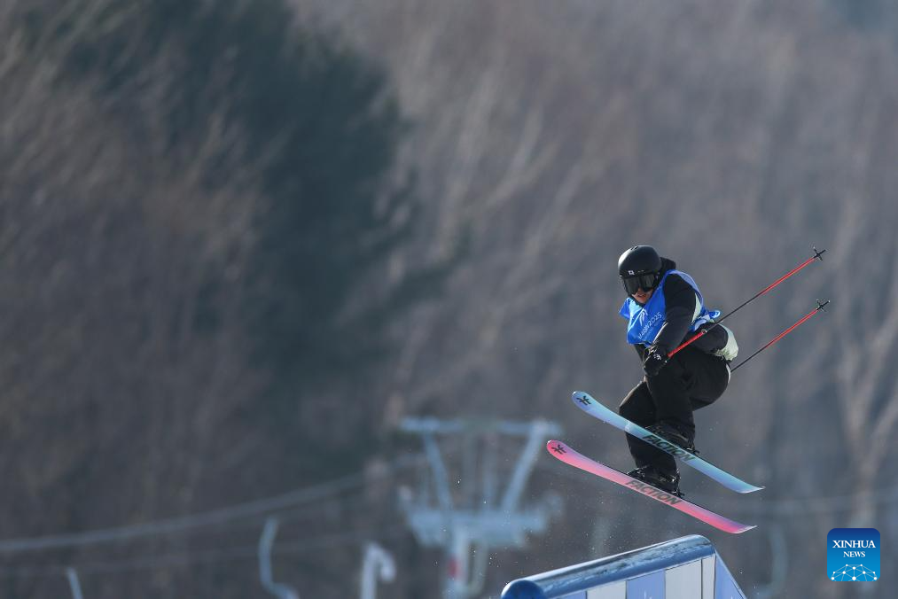 Lin Hao of China competes during the Freestyle Skiing men's freeski slopestyle final at the 9th Asian Winter Games in Yabuli, northeast China's Heilongjiang Province, Feb. 11, 2025. (Xinhua/Mu Yu)
