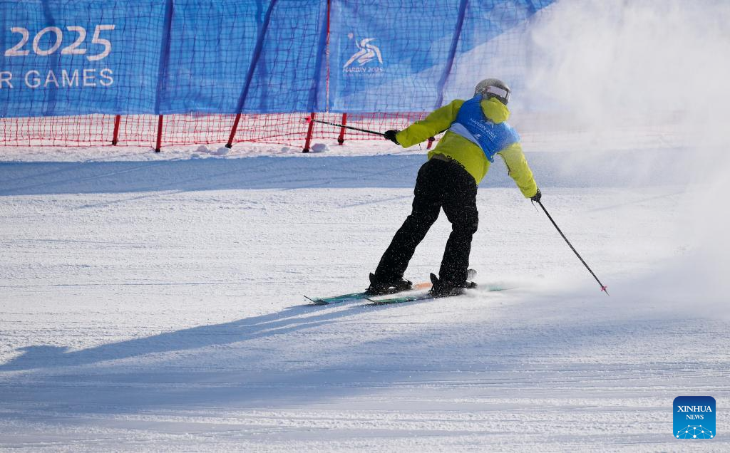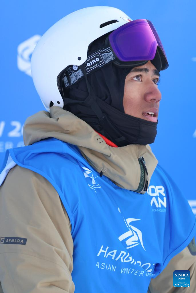 Abdulla Alrasheed of the United Arab Emirates (UAE) competes during the Freestyle Skiing men's freeski slopestyle final at the 9th Asian Winter Games in Yabuli, northeast China's Heilongjiang Province, Feb. 11, 2025. (Xinhua/Yang Qing)