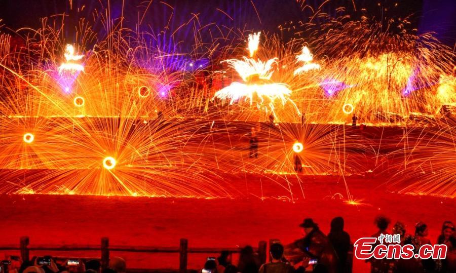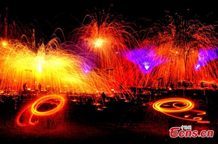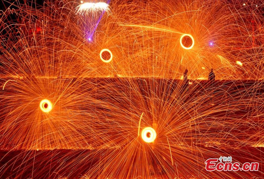 "Iron flowers", a performance of splashing molten iron to create dazzling fireworks, wowed visitors.