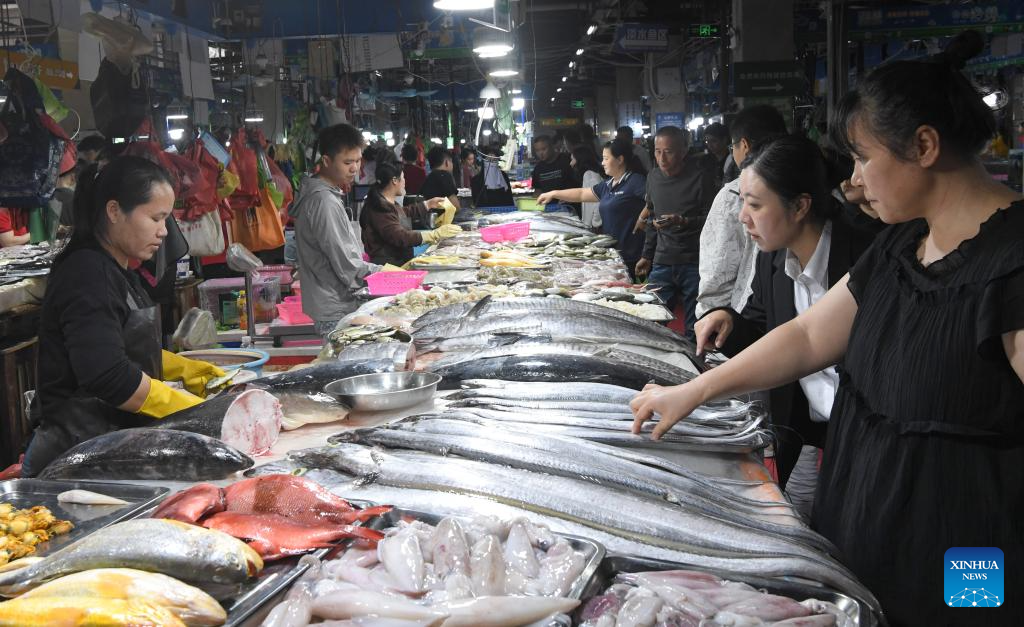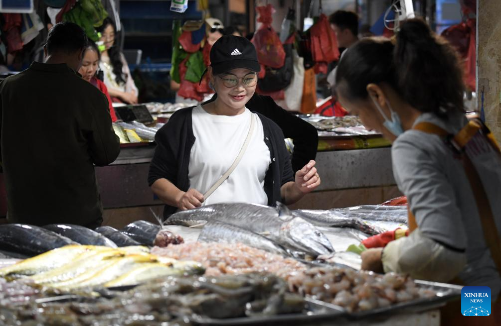 People buy seafood at a food market in Sanya, south China's Hainan Province, Feb. 11, 2025. (Xinhua/Zhao Yingquan)
