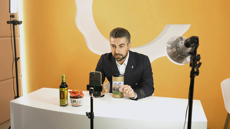 Burak advertises products during a livestream in Luzhou city, southwest China's Sichuan Province. (People's Daily Overseas Edition/Song Haoxin)