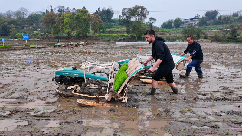 In Ruifeng village, Hejiang county, Luzhou city of southwest China's Sichuan Province, a man from Türkiye is often seen working the fields. Whether digging soil, growing vegetables, transplanting rice seedlings, threshing, harvesting corn, or carrying sweet potatoes, he does it all with skill and ease. He also speaks the Luzhou dialect fluently.