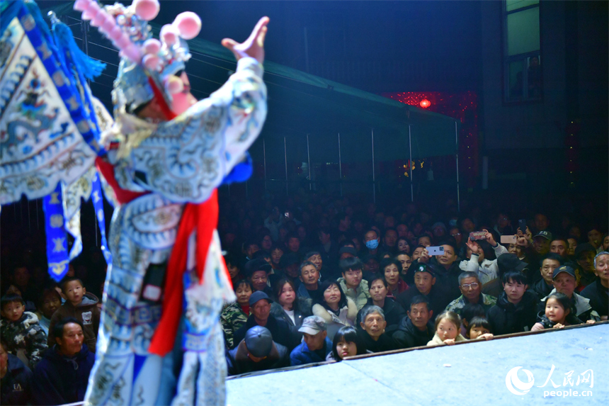On the evening of Feb. 5, a performance of Yiyang Opera, a national intangible cultural heritage in China, took place in a village in Poyang county, Shangrao city, east China's Jiangxi Province. The resounding and spirited sounds of drums and gongs, combined with the ancient and unique Yiyang Opera, echoed through the village, creating a festive New Year atmosphere for the villagers.