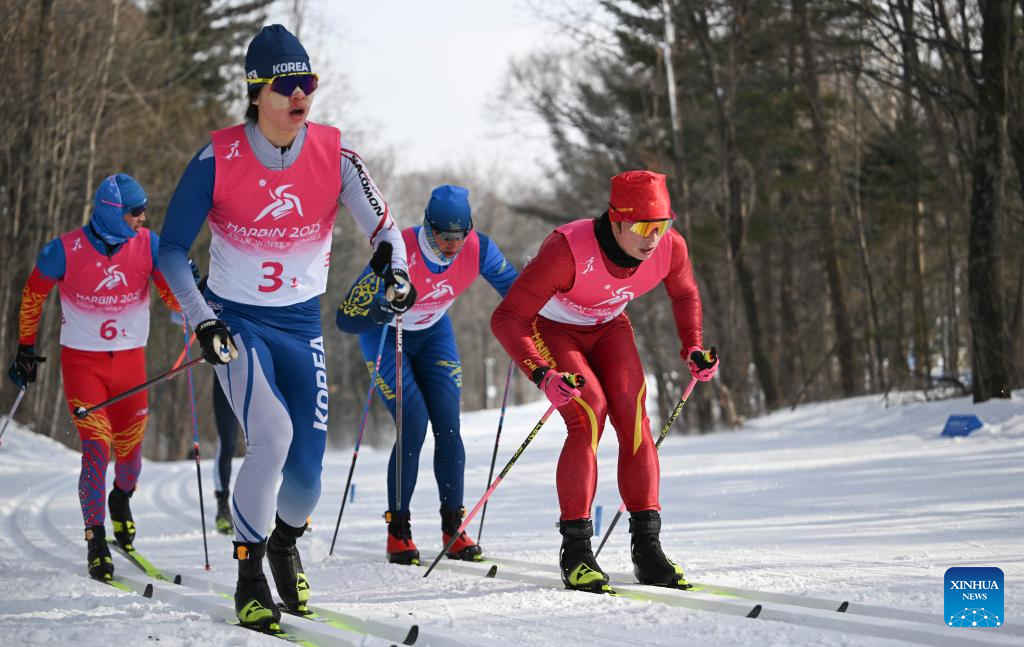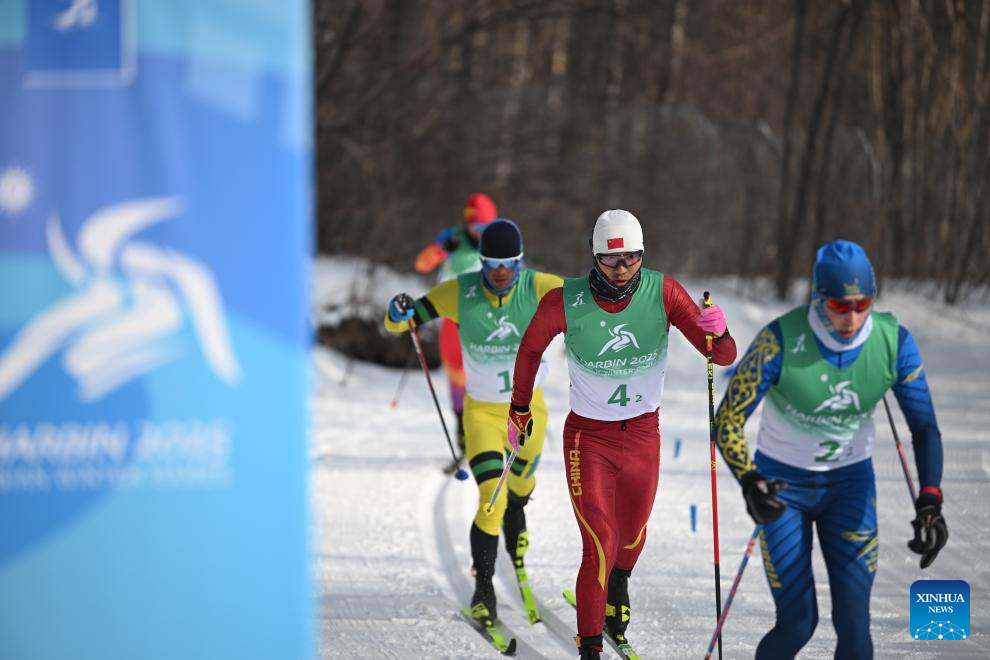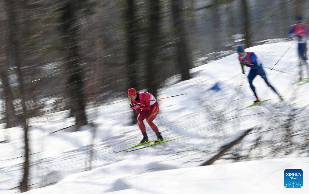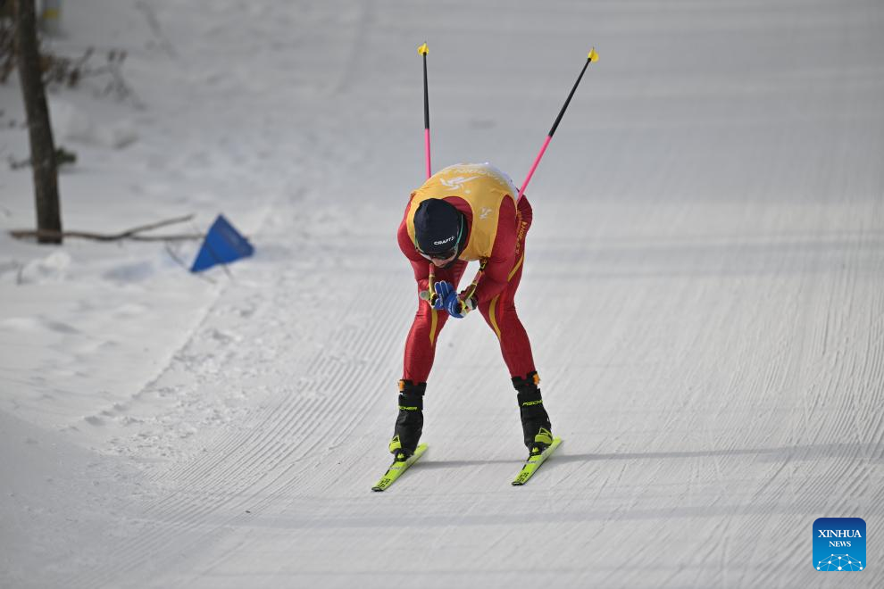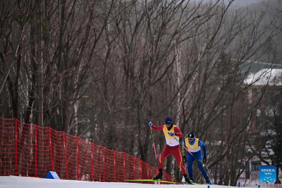Bao Lin of China competes during the Cross-Country Skiing men's 4x7.5km relay match at the 9th Asian Winter Games in Yabuli, northeast China's Heilongjiang Province, Feb. 12, 2025. (Xinhua/Wu Zhizun)
