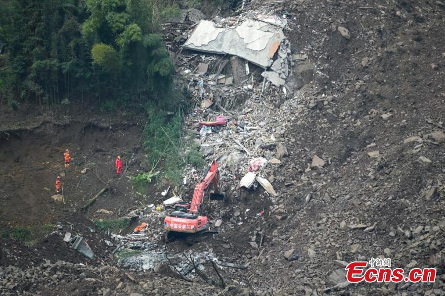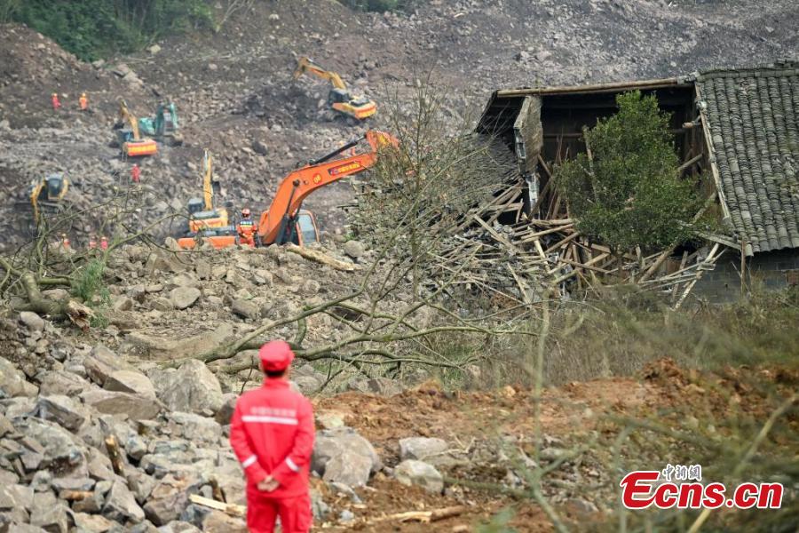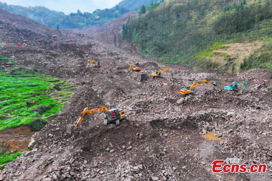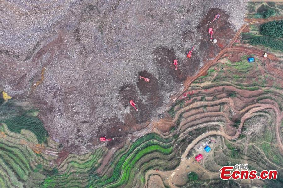 Excavators work at the rescue site in Junlian County in the city of Yibin, southwest China's Sichuan Province, Feb. 11, 2025. (China News Service/Liu Zhongjun)