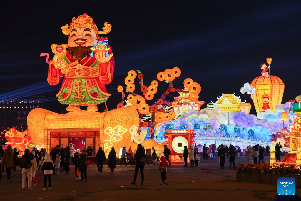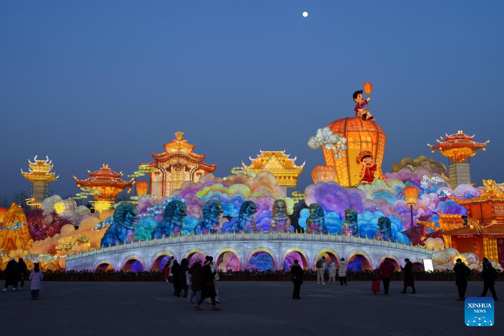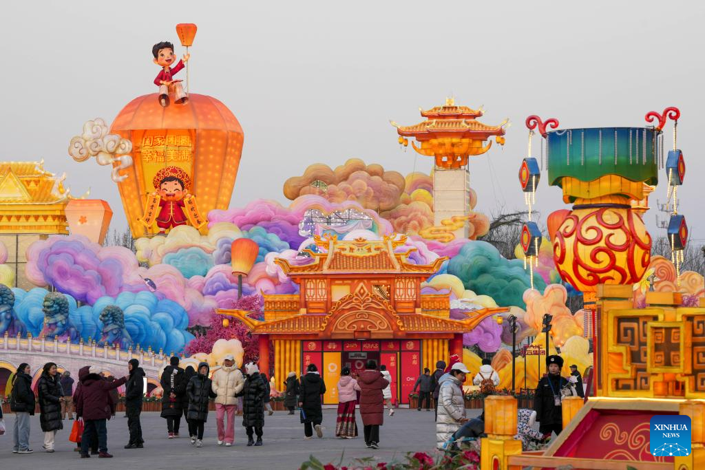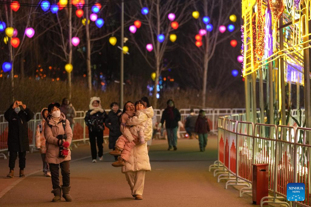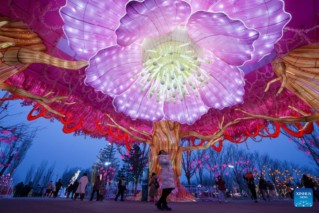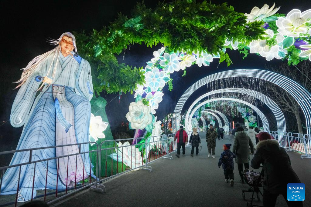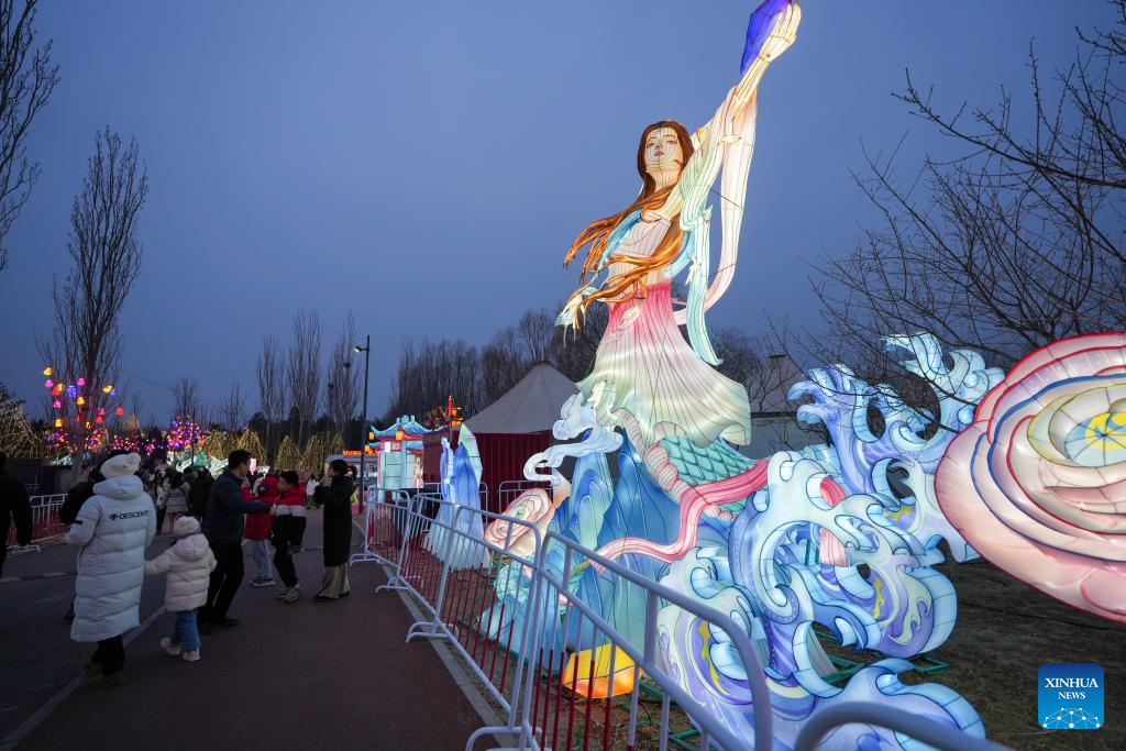 People visit a lantern fair at Beijing Garden Expo Park in Beijing, capital of China, Feb. 10, 2025. Two major lantern fairs are held in Beijing to mark the Lantern Festival, which falls on Wednesday. (Xinhua/Ju Huanzong)