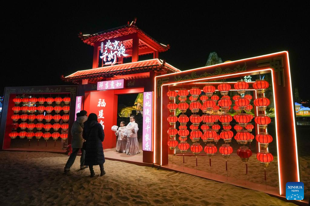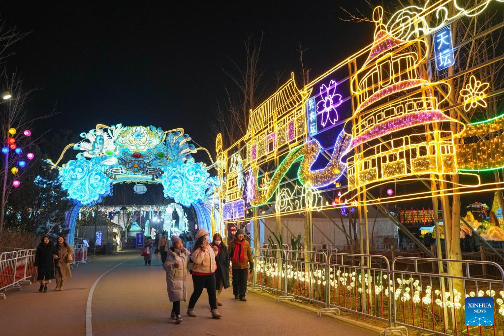 People visit a lantern fair at Beijing Wenyuhe Park in Beijing, capital of China, Feb. 11, 2025. Two major lantern fairs are held in Beijing to mark the Lantern Festival, which falls on Wednesday. (Xinhua/Ju Huanzong)