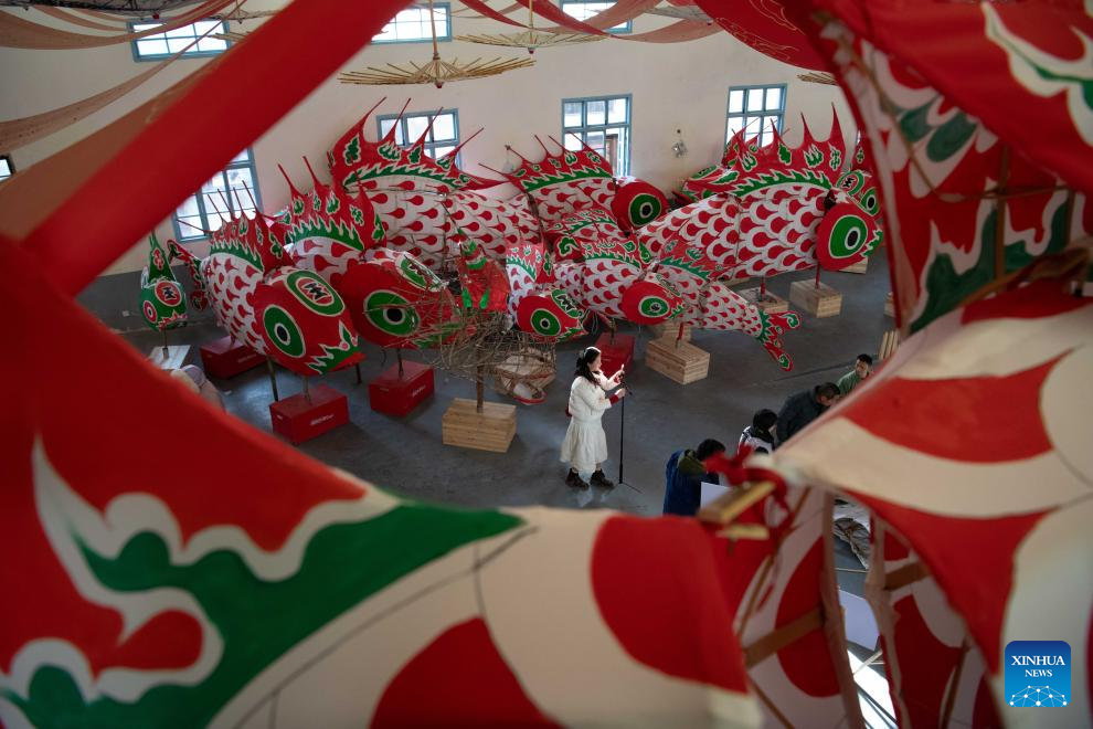 A villager makes fish-shaped lanterns in Wangmantian Village of Xitou Town in Shexian County, Huangshan City of east China's Anhui Province, Feb. 10, 2025. Local villagers have the tradition to make fish-shaped lanterns to pray for harvest and good fortune and parade with them cheerfully around the Lantern Festival, which falls on the 15th day of the first month of the Chinese lunar calendar, or Feb. 12 this year. (Xinhua/Zhang Duan)
