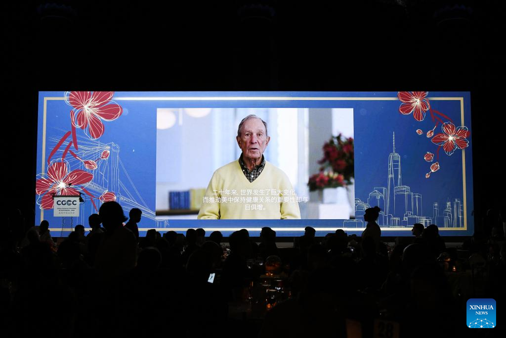 Michael R. Bloomberg, founder of Bloomberg LP and Bloomberg Philanthropies and three-term former mayor of New York City, delivers a special video message congratulating the China General Chamber of Commerce-USA (CGCC) on its 20th anniversary in New York City, the United States, on Feb. 11, 2025. (Xinhua/Li Rui)