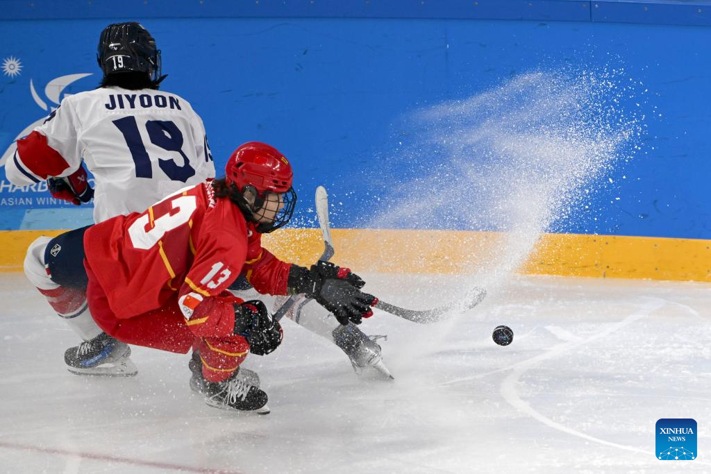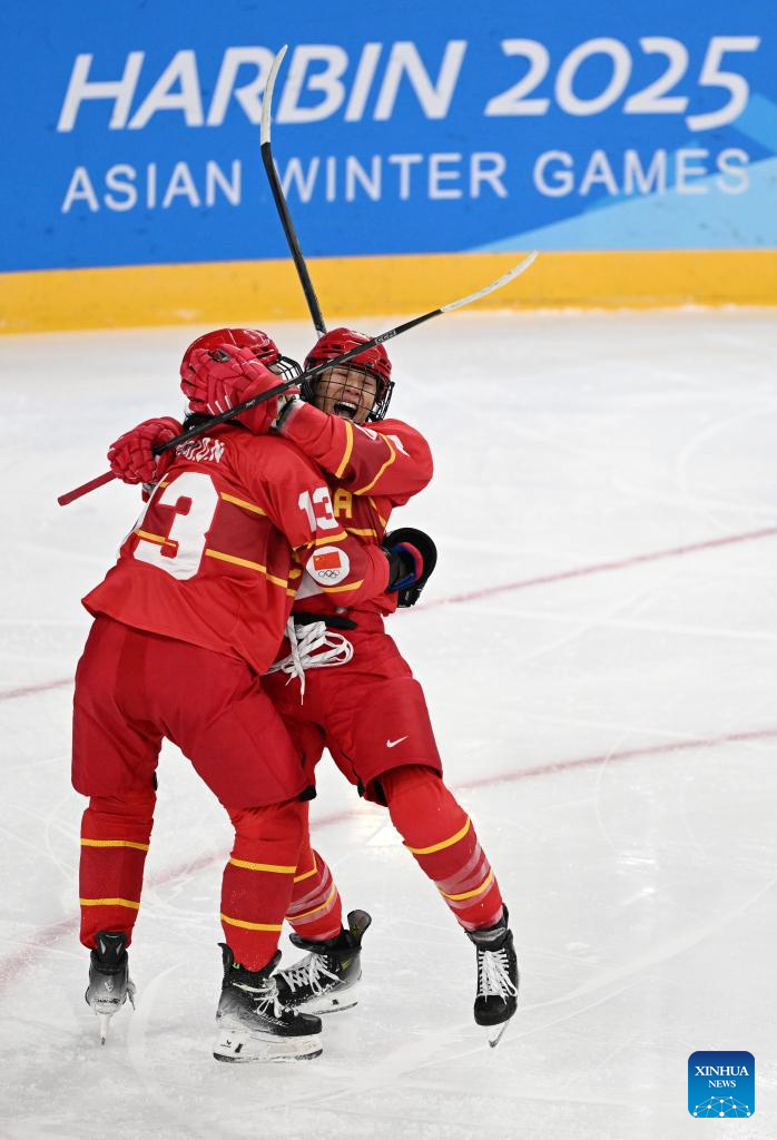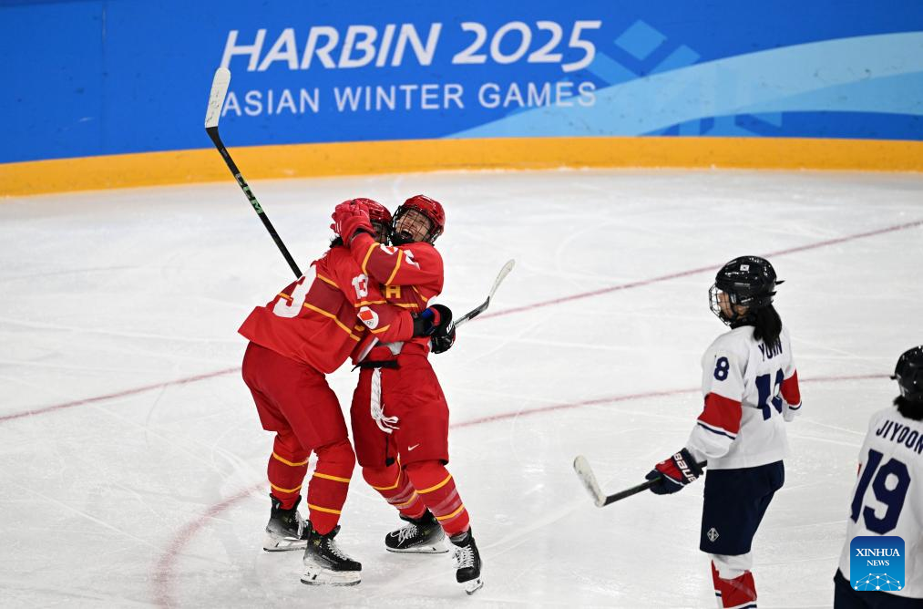 HARBIN, Feb. 12 (Xinhua) -- China defeated South Korea 2-1 in a women's ice hockey Group A match at the 2025 Harbin Asian Winter Games on Wednesday, and Japan cruised past Kazakhstan 4-0.