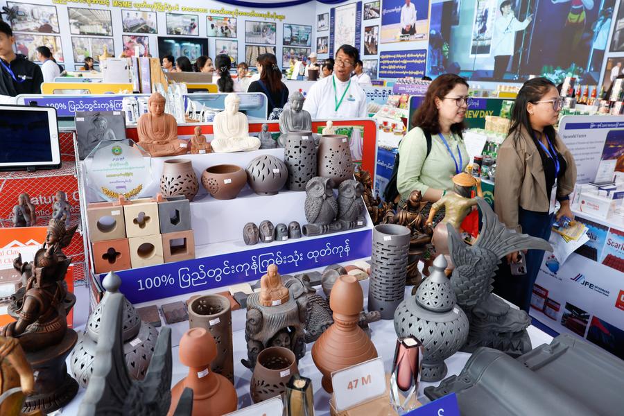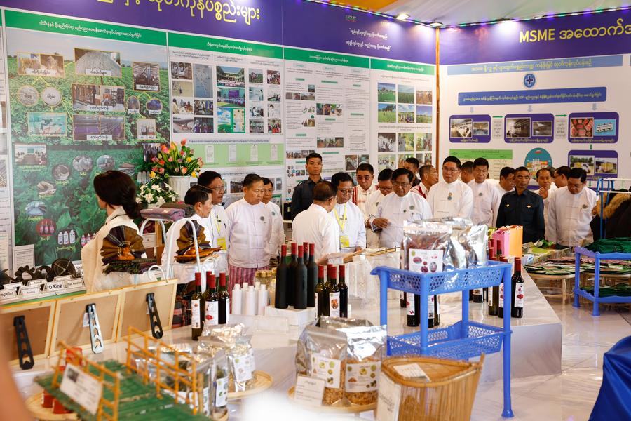 Participants attend the union-level Micro, Small and Medium Enterprise (MSME) product exhibition in Nay Pyi Taw, Myanmar, Feb. 10, 2025. (Xinhua/Myo Kyaw Soe)