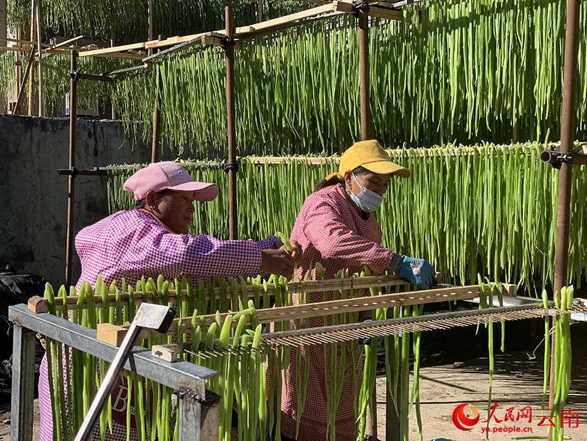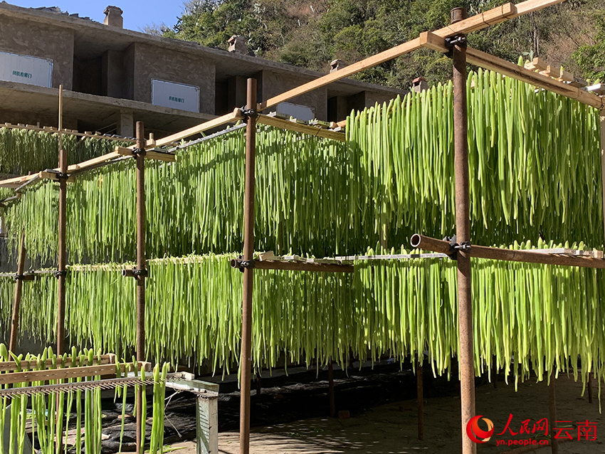 Farmers have been busy drying Gong Cai, a vegetable of the lettuce family, in Fakong village, a mountainous village in Majie township, Nanhua county, Chuxiong Yi Autonomous Prefecture of southwest China's Yunnan Province.