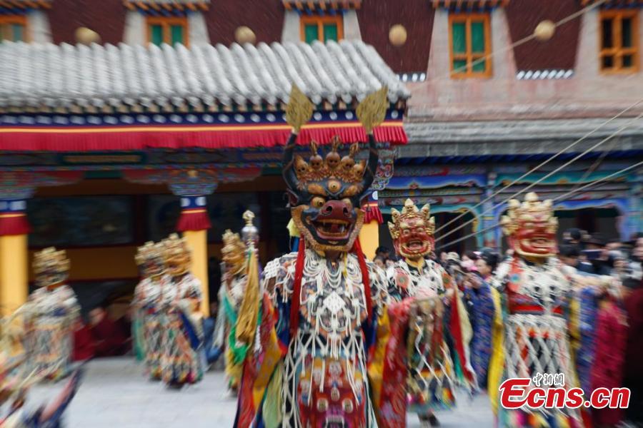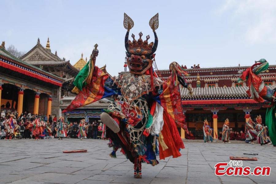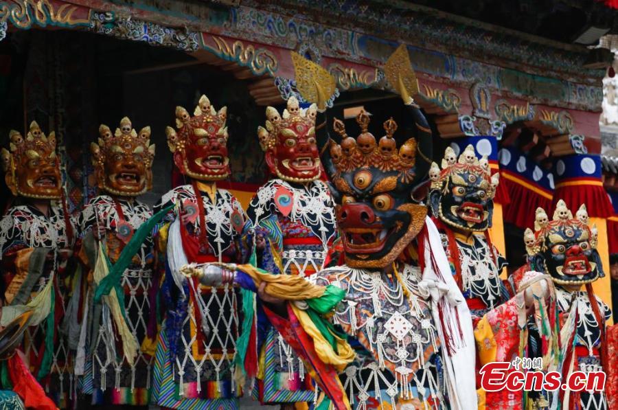 Monks perform Cham dance to pray for good harvest, peaceful life in Qinghai