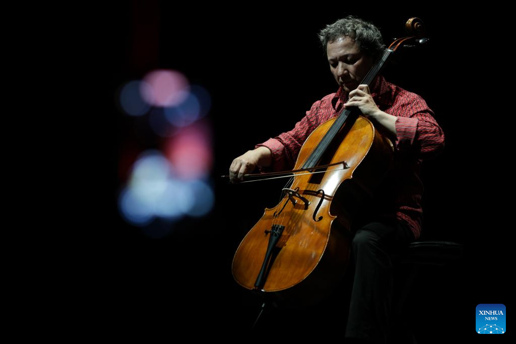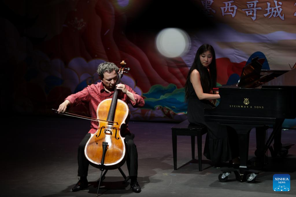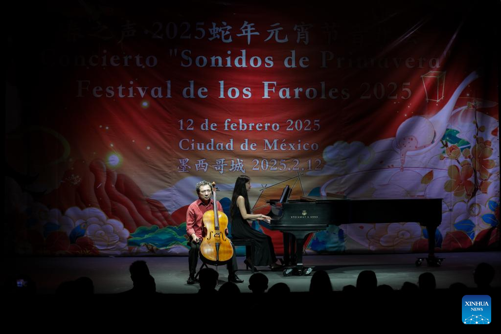 Cellist Chu Yibing performs during a concert in celebration of the Lantern Festival at the China Culture Center in Mexico City, capital of Mexico, on Feb. 12, 2025. (Photo by Francisco Canedo/Xinhua)