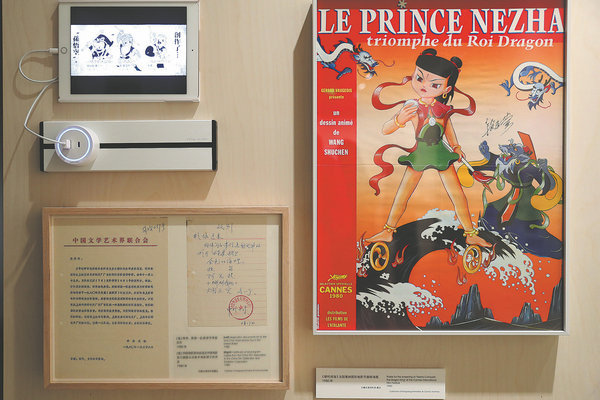 A poster for Nezha Conquers the Dragon King (1979), also by the studio, when it screened in the 1980 Cannes Film Festival. (Zhang Hengwei/China News Service)