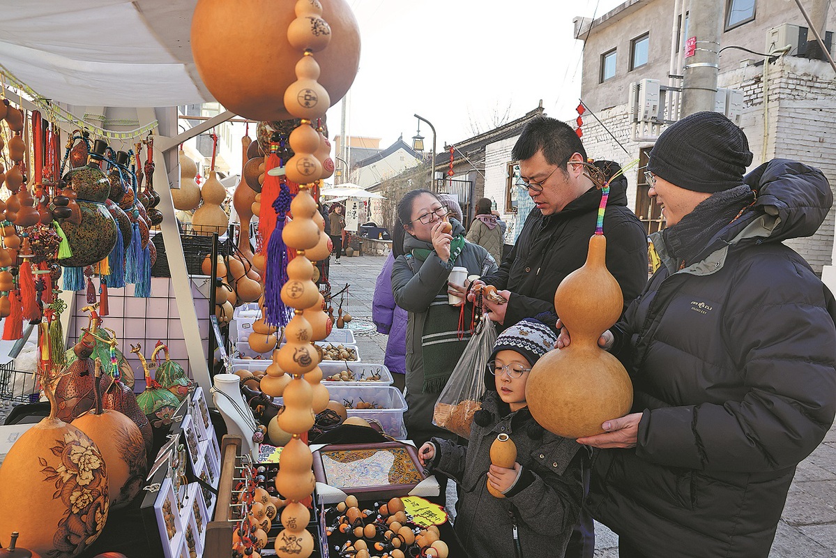 A stall selling gourds attracts visitors at the market. (Wang Jing/China Daily)