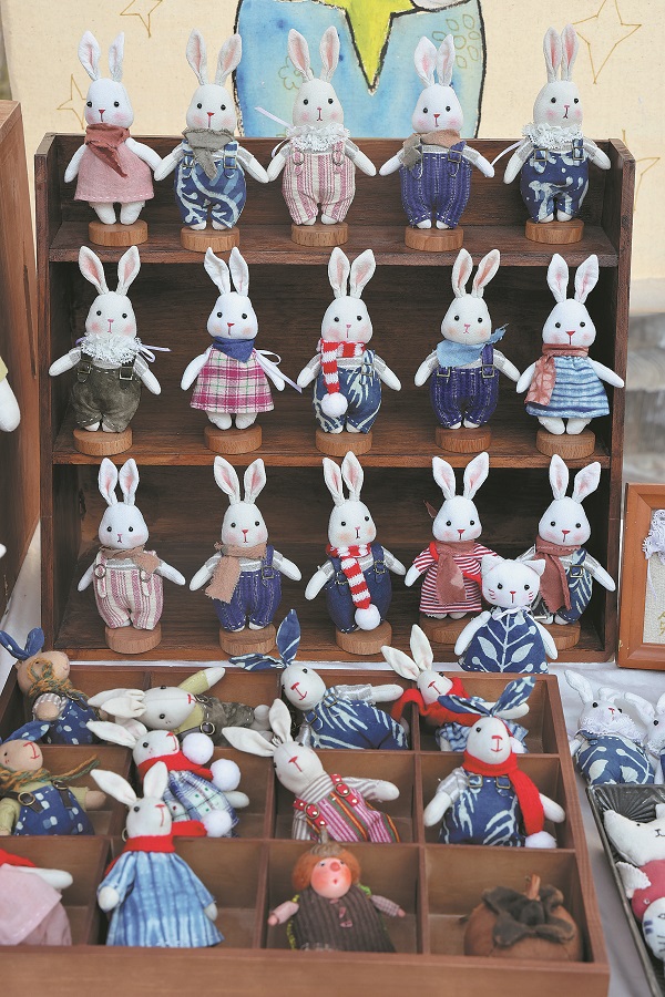 Handmade rabbit toys are available at the market. (Wang Jing/China Daily)