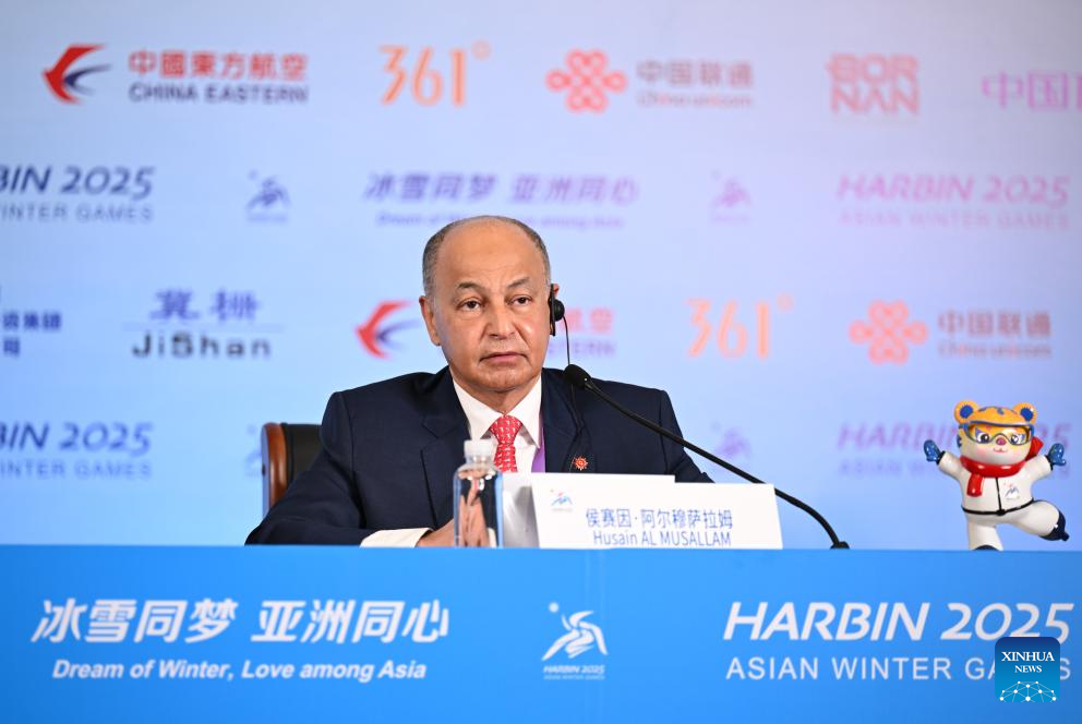 Husain Al Musallam, director general of the Olympic Council of Asia (OCA), speaks during a press conference held by the OCA and the Harbin Asian Winter Games Organizing Committee (HAWGOC) at the 9th Asian Winter Games in Harbin, northeast China's Heilongjiang Province, Feb. 14, 2025. (Xinhua/Cai Xiangxin)